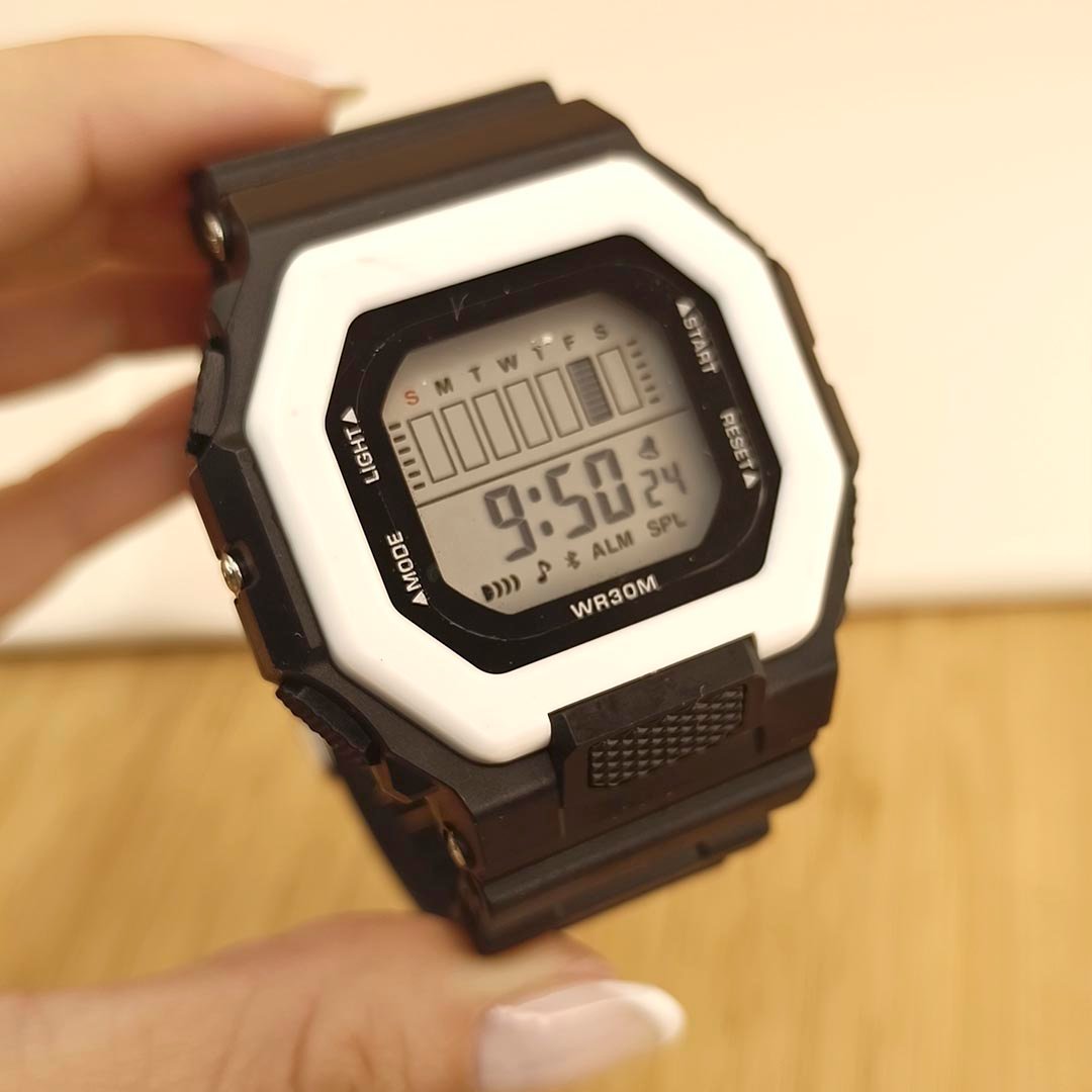 Reloj Deportivo Jolie - Negro Borde Blanco