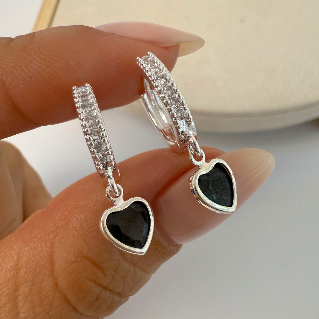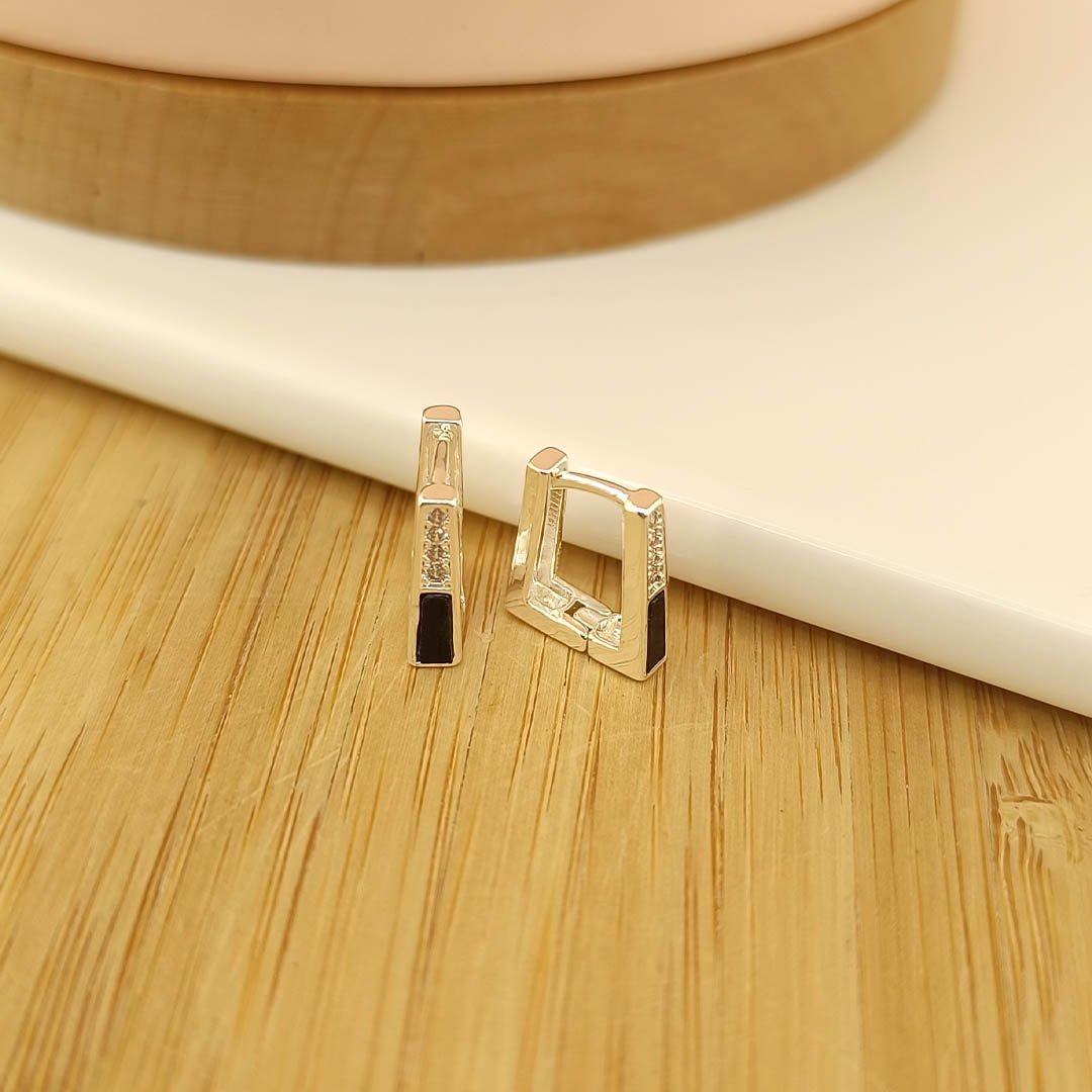 Argollas Rectangular + Piedritas + Esmalte Negro