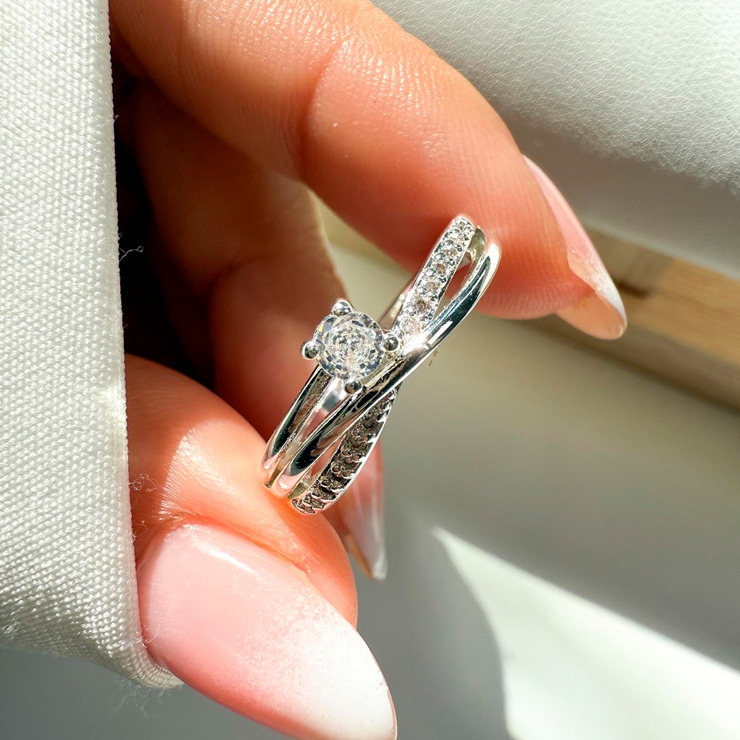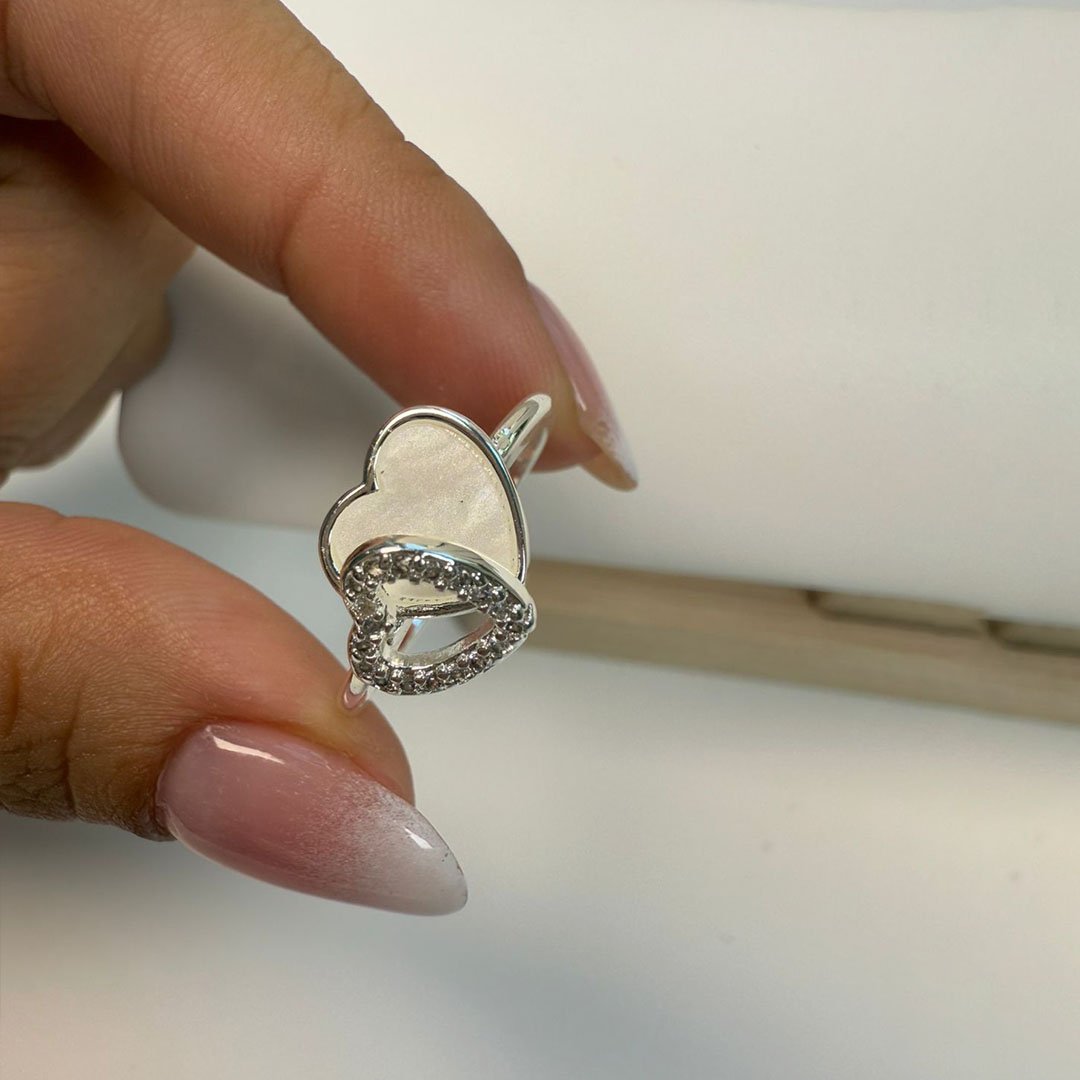 Anillo Corazon Calado - Esmaltado Blanco/ Piedritas