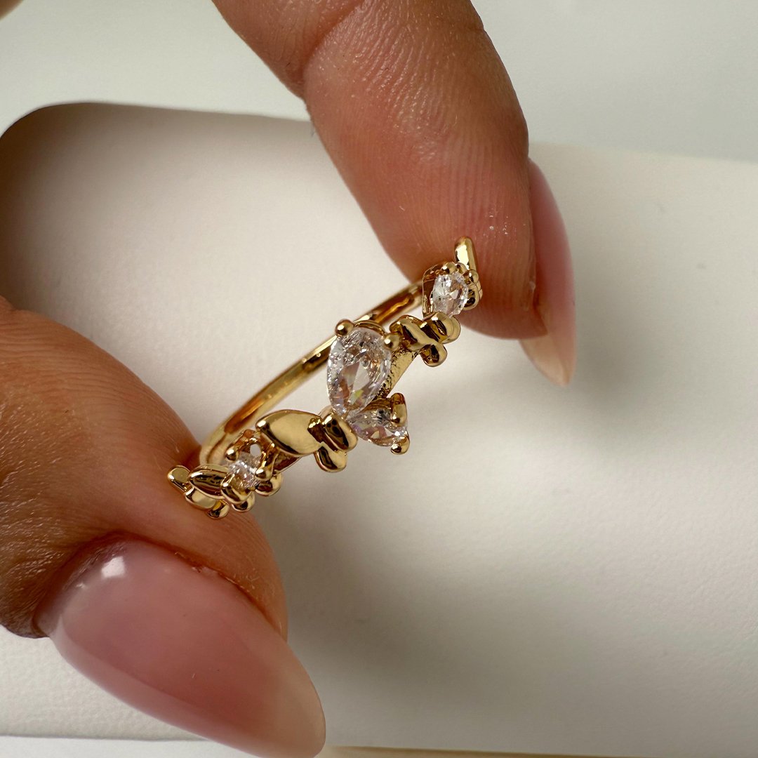 Anillo Dorado Falange Tulipe - Blanco