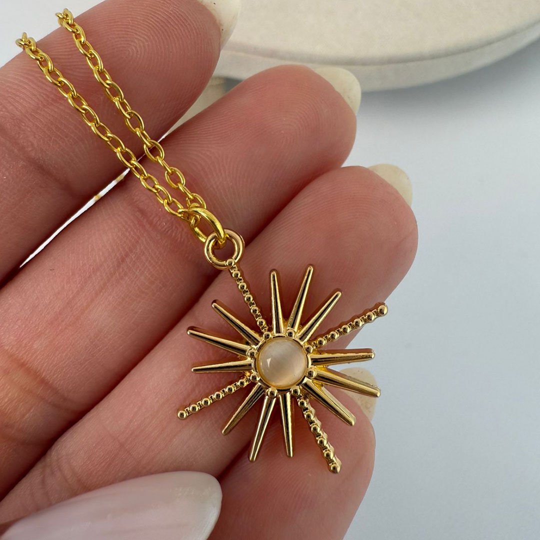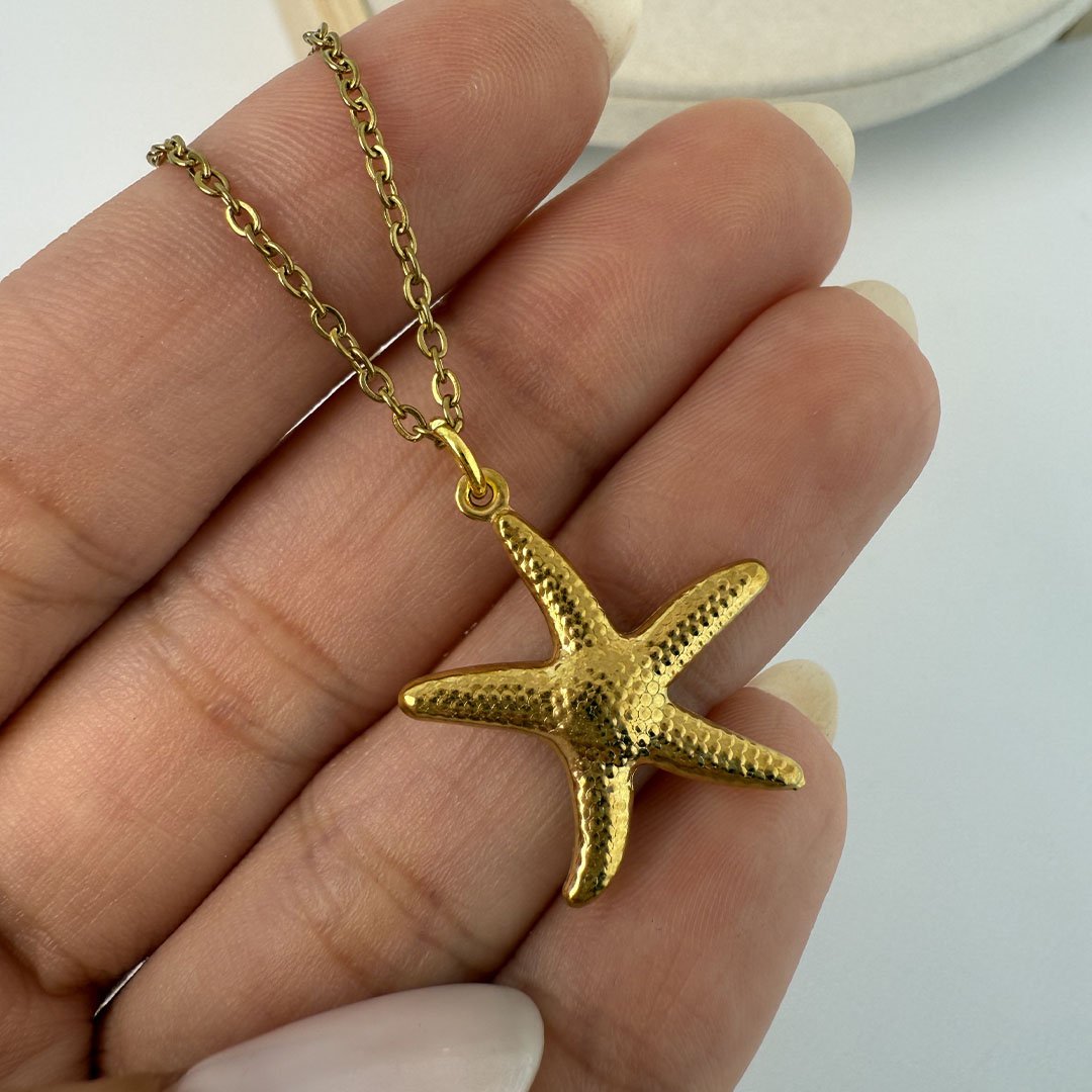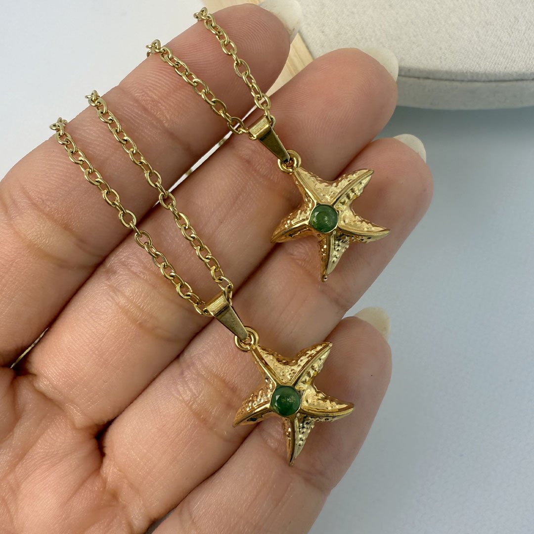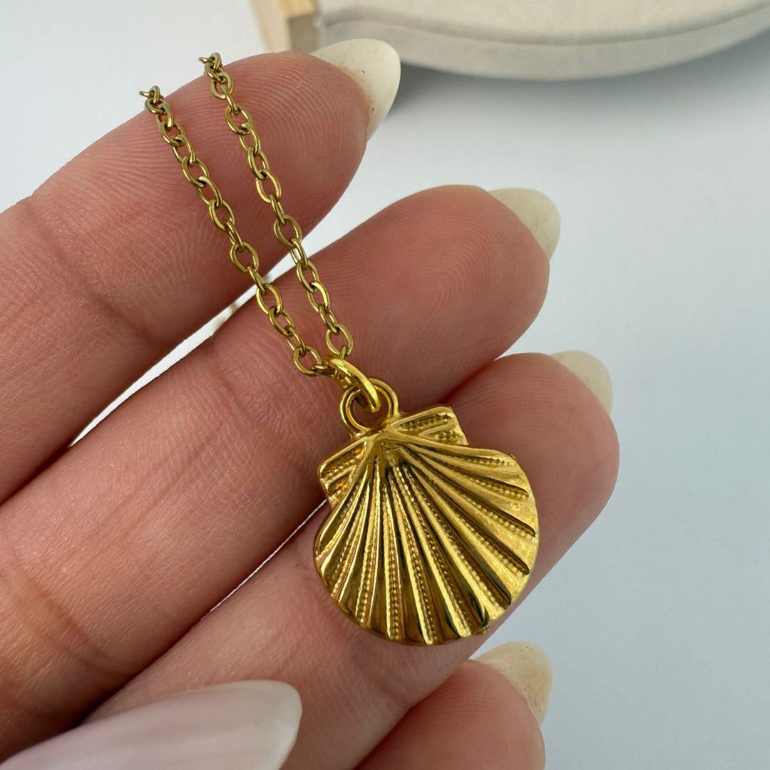 Collar Dorado Dije Ostra - Piedrita Celeste