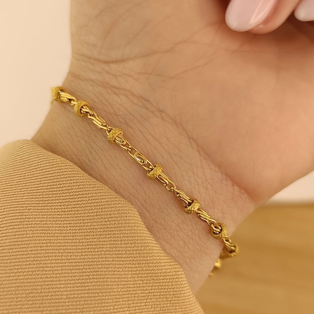 Pulsera Cadena Forzada Con Bolitas - Dorado