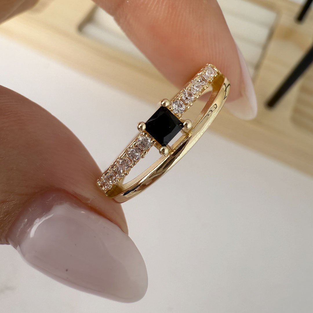 Anillo Prince Dorado - piedra Negra