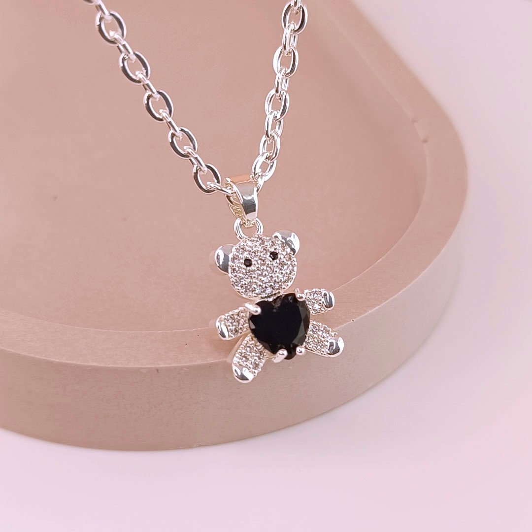 Collar + Dije Osito Corazón En El Centro - Negro