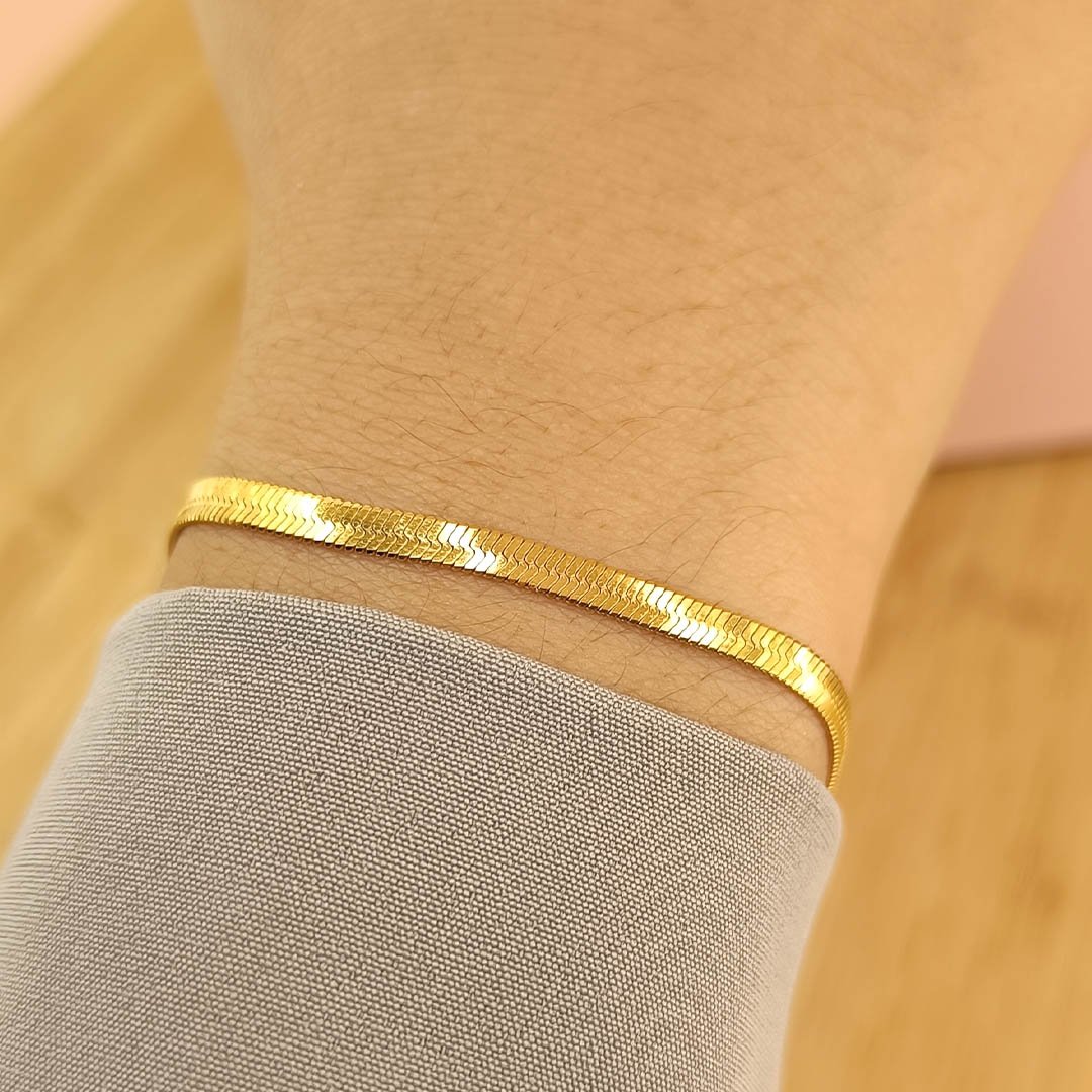 Pulsera Dorada Cola De Ratón Plana 3mm