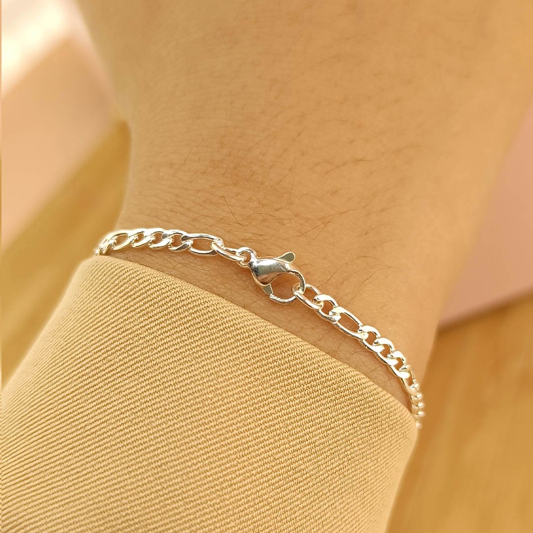 Acero Blanco Pulseras Pulsera Figaro 3mm