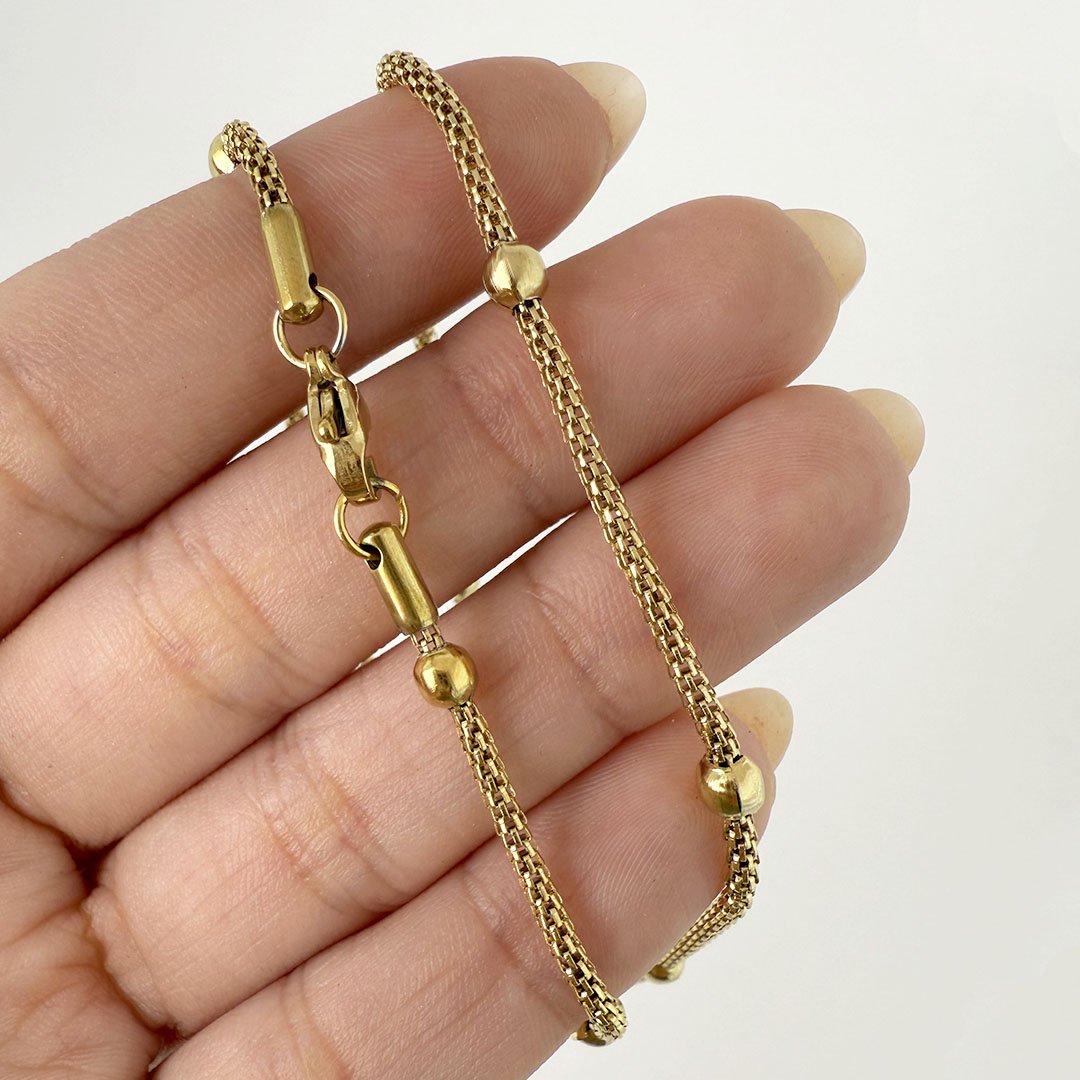 Cadena Dorado Malla 2mm Con Bolitas 3mm