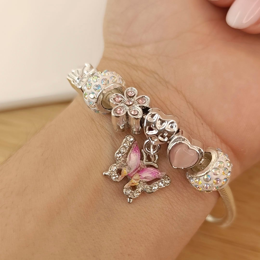 Pulsera Dupe- Mariposa Rosada / amarillo + Corazón Rosa