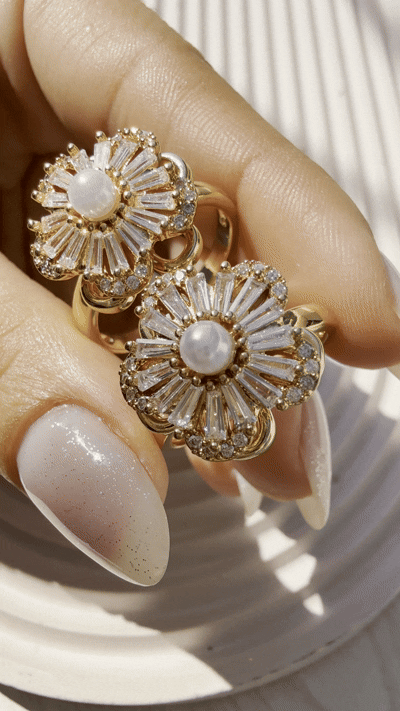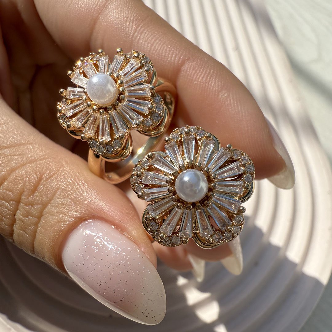 Anillo Flor Dorado + Perlita en el centro