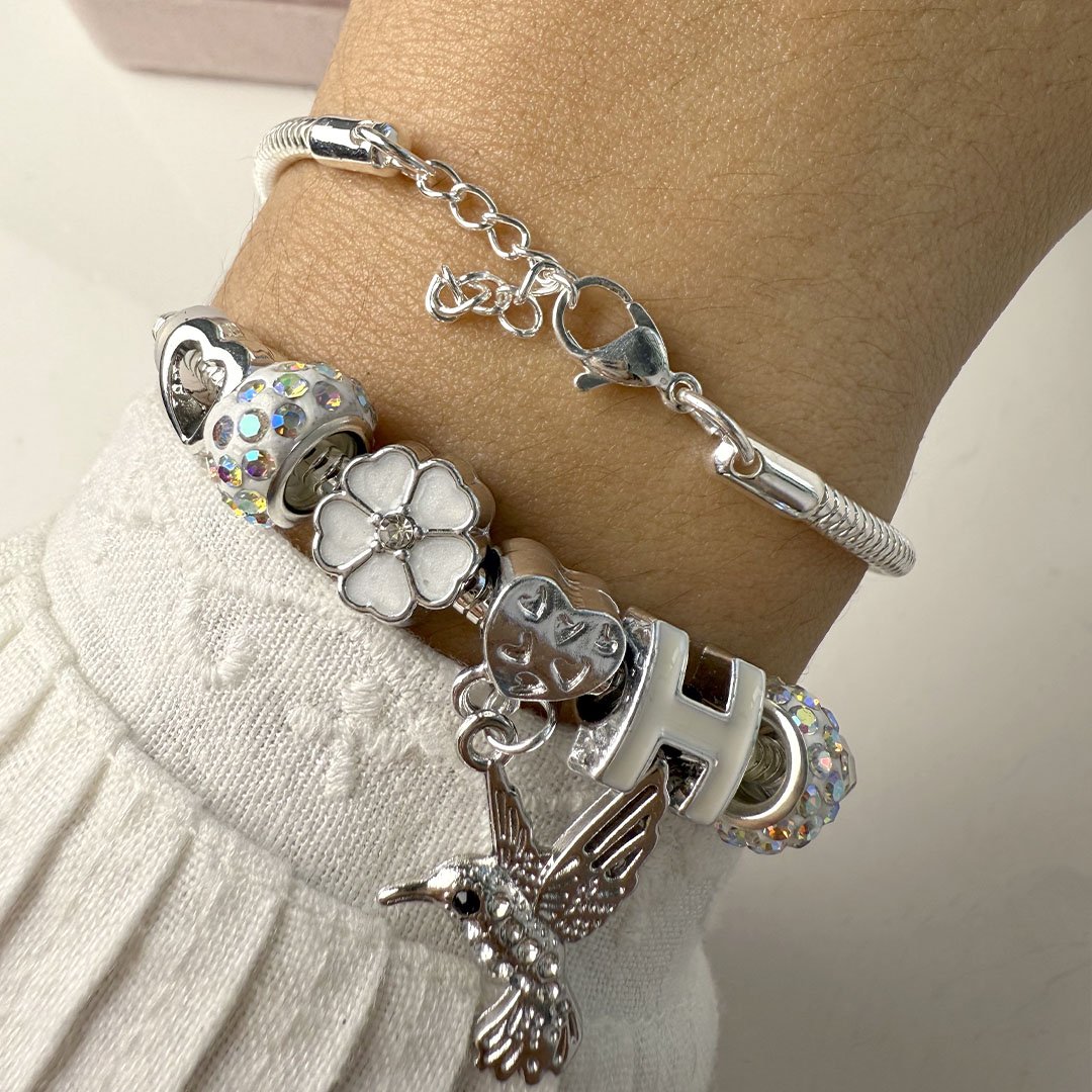 Pulsera Dupe - Dije Colibrí / Florcita - Blanco