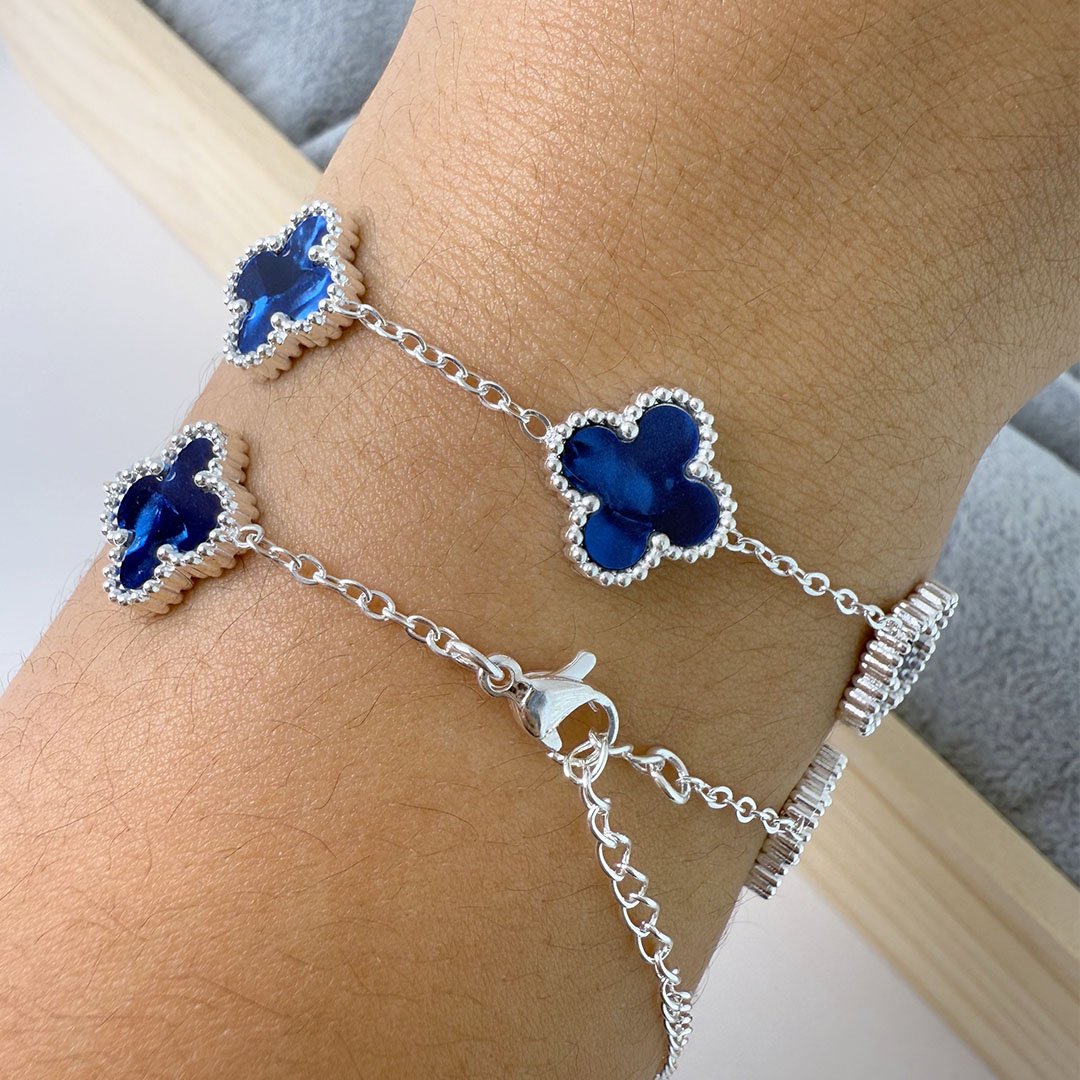 Pulsera Tréboles simil mármol - Azul