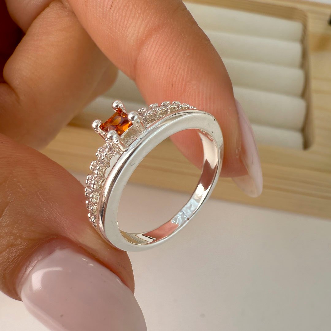 Acero Blanco Anillos Anillo Prince - Naranja/ Rojizo