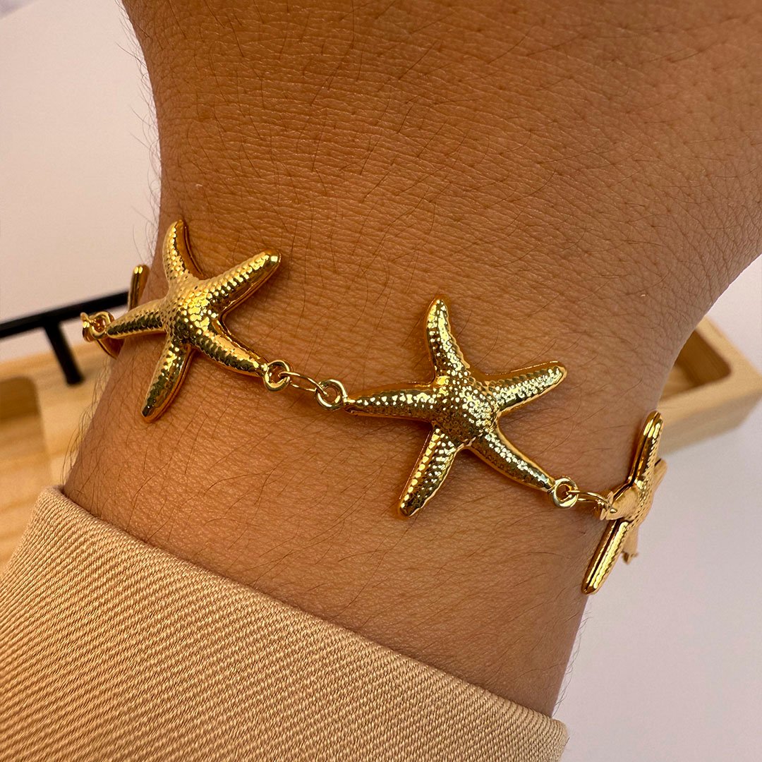 Pulsera Dorada Dije Unidos Estrellas de Mar