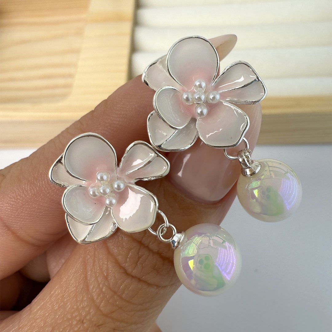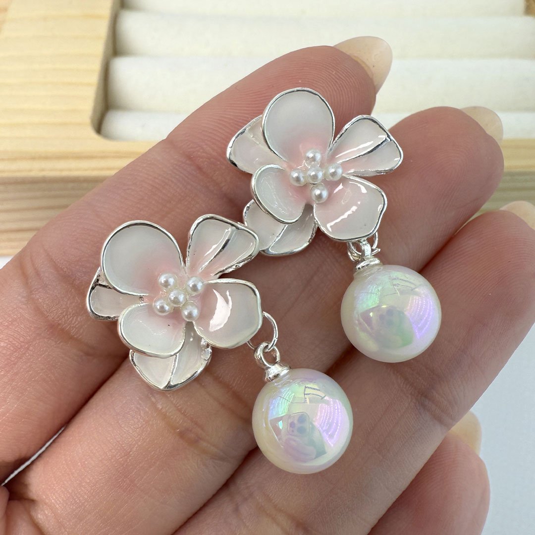 Acero Blanco Aros Aros Moie Florcita Rosada - Perla