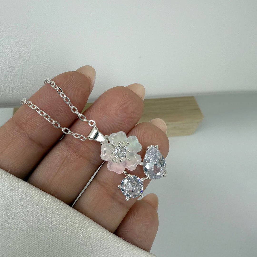 Collar Dije Flor Conti - Blanco / Transparente mini tinte rosado