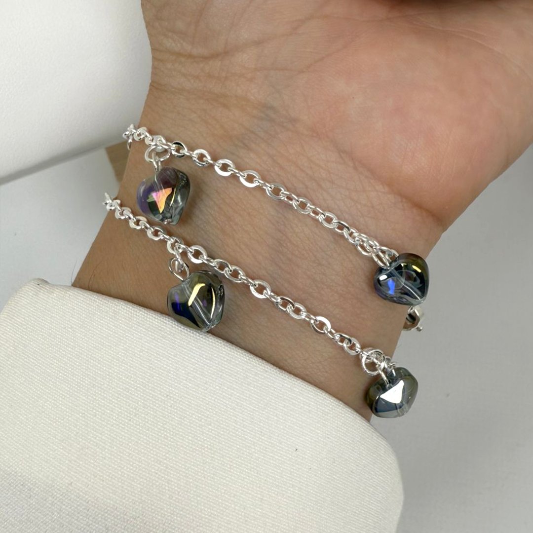Pulsera con dijes Corazones -Gris/Violeta