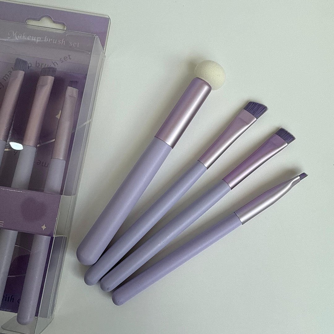 Incluye 4 herramientas esenciales para la aplicación de productos faciales y de ojos en un tono Lila.