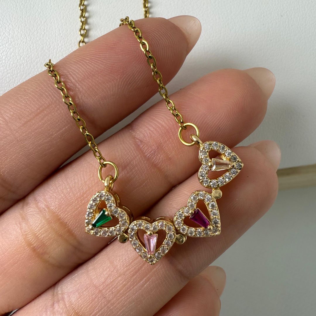 Collar dorado cuatro Corazones/Trébol - Coloridos