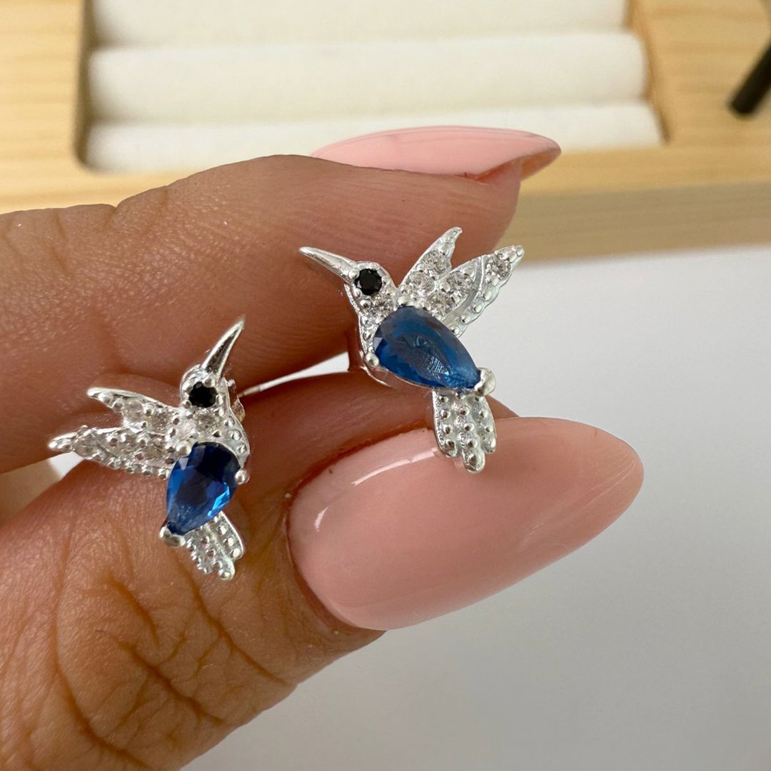 Aros Colibrí Piedra Azul en el centro