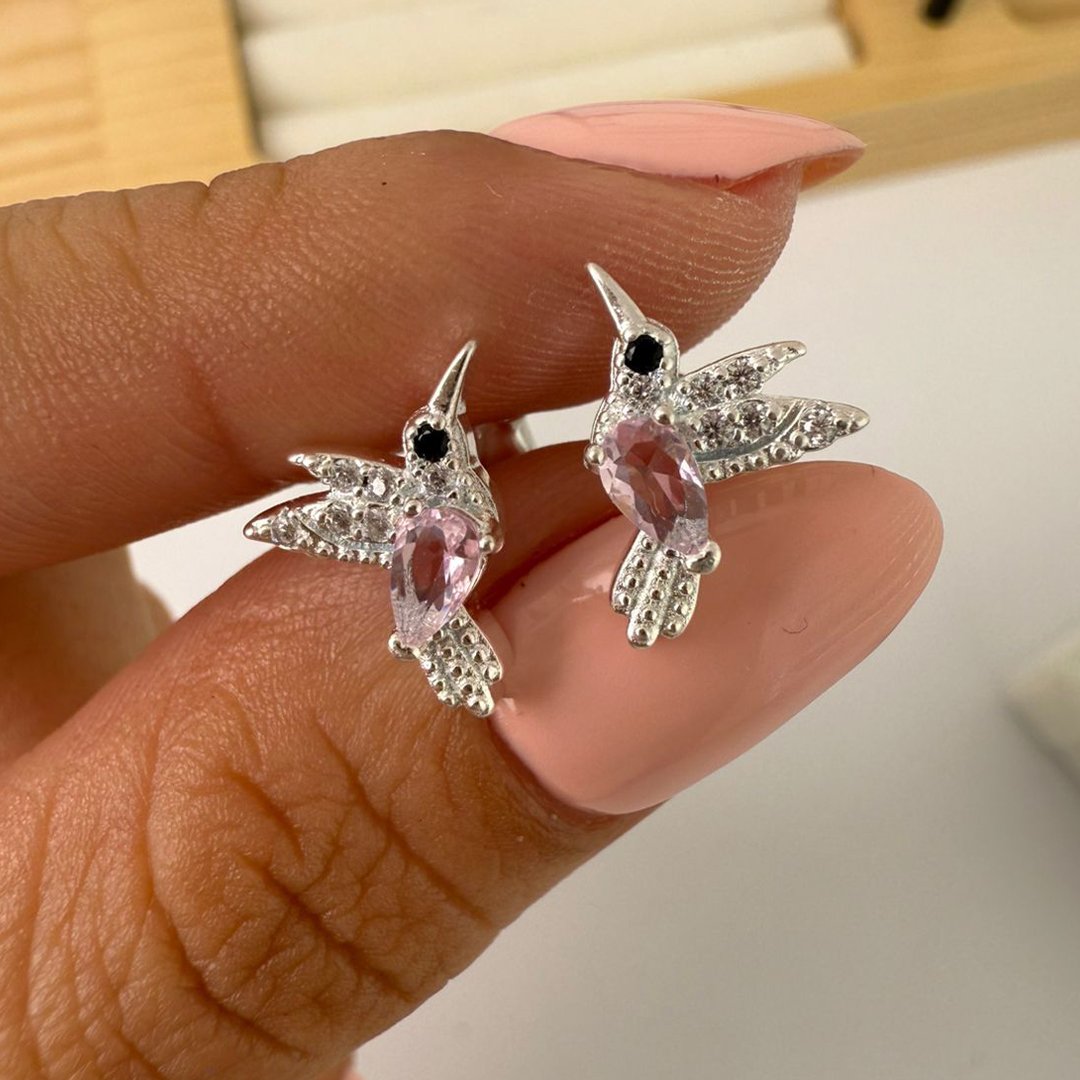 Aros Colibrí Piedra Rosaso- en el centro