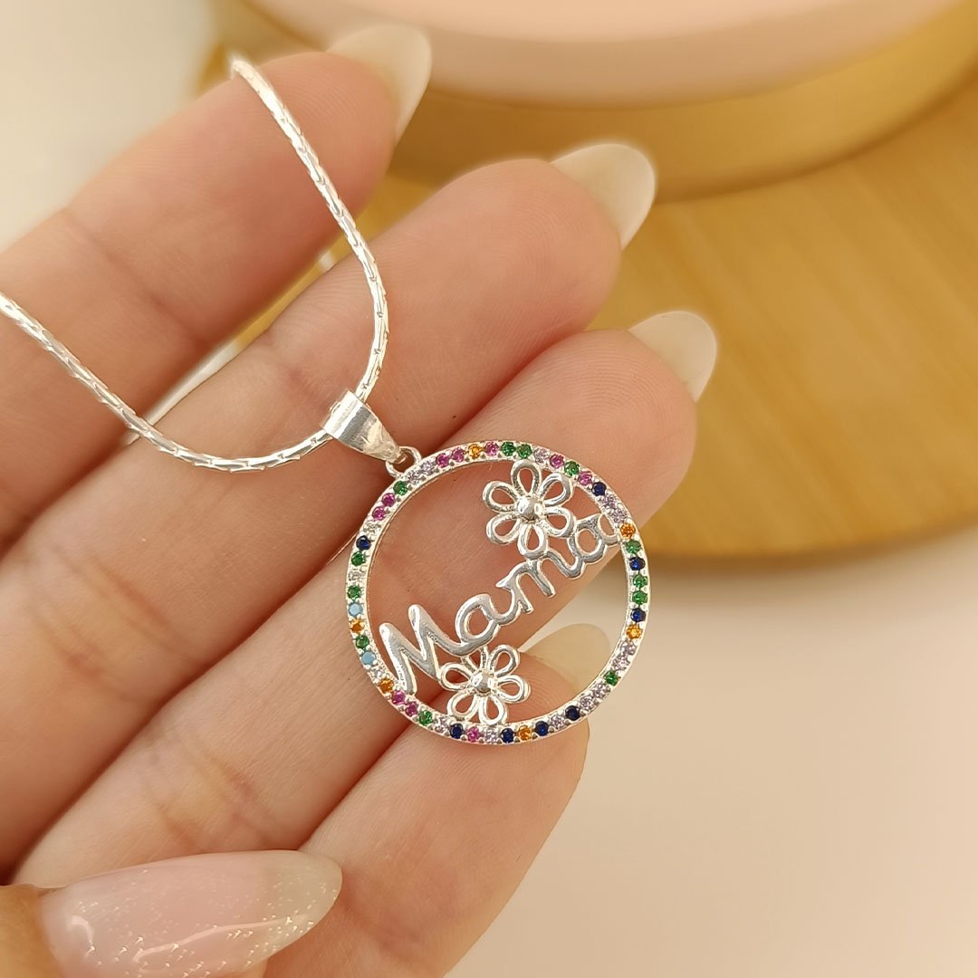 Collar con dije circular Mamá