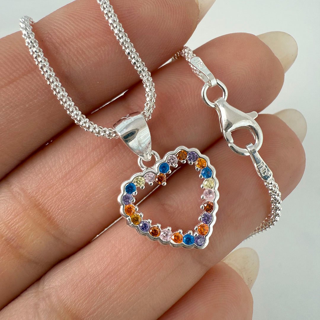 Collar Cadena Coreana + Dije Corazón Calado - Piedras Coloridas