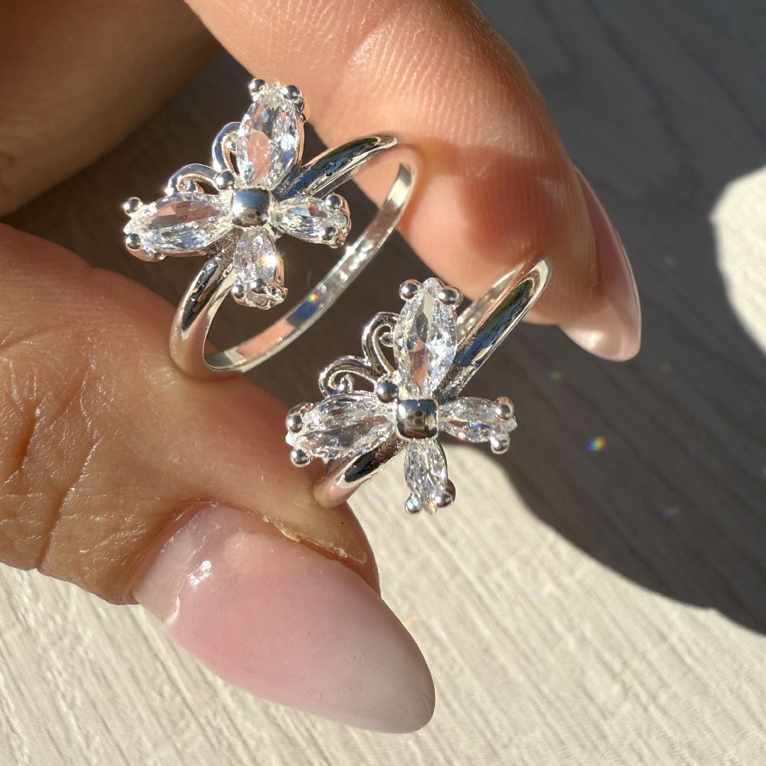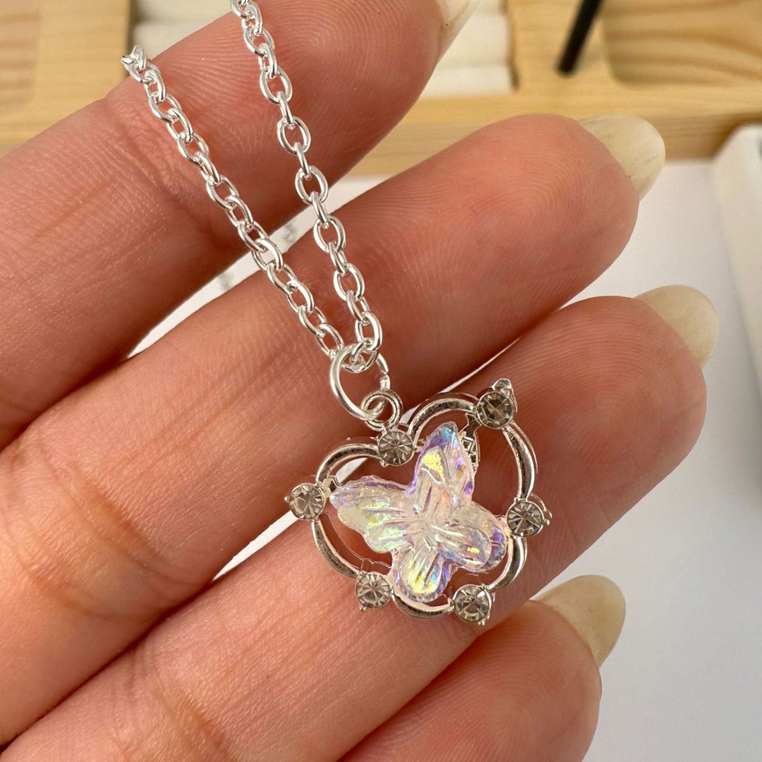 Collar Dije Mariposa Tornasol / Piedritas Blancas