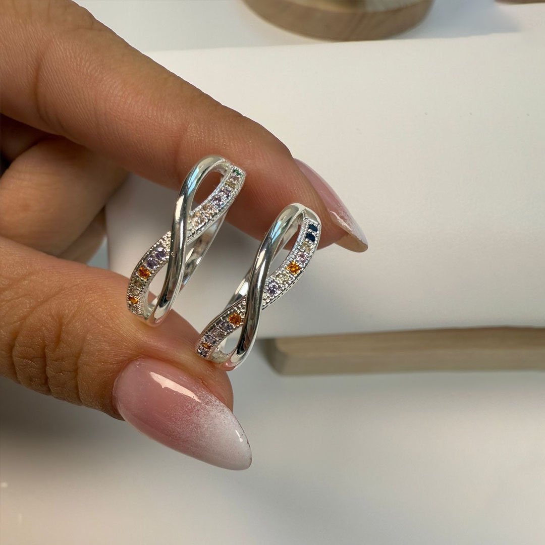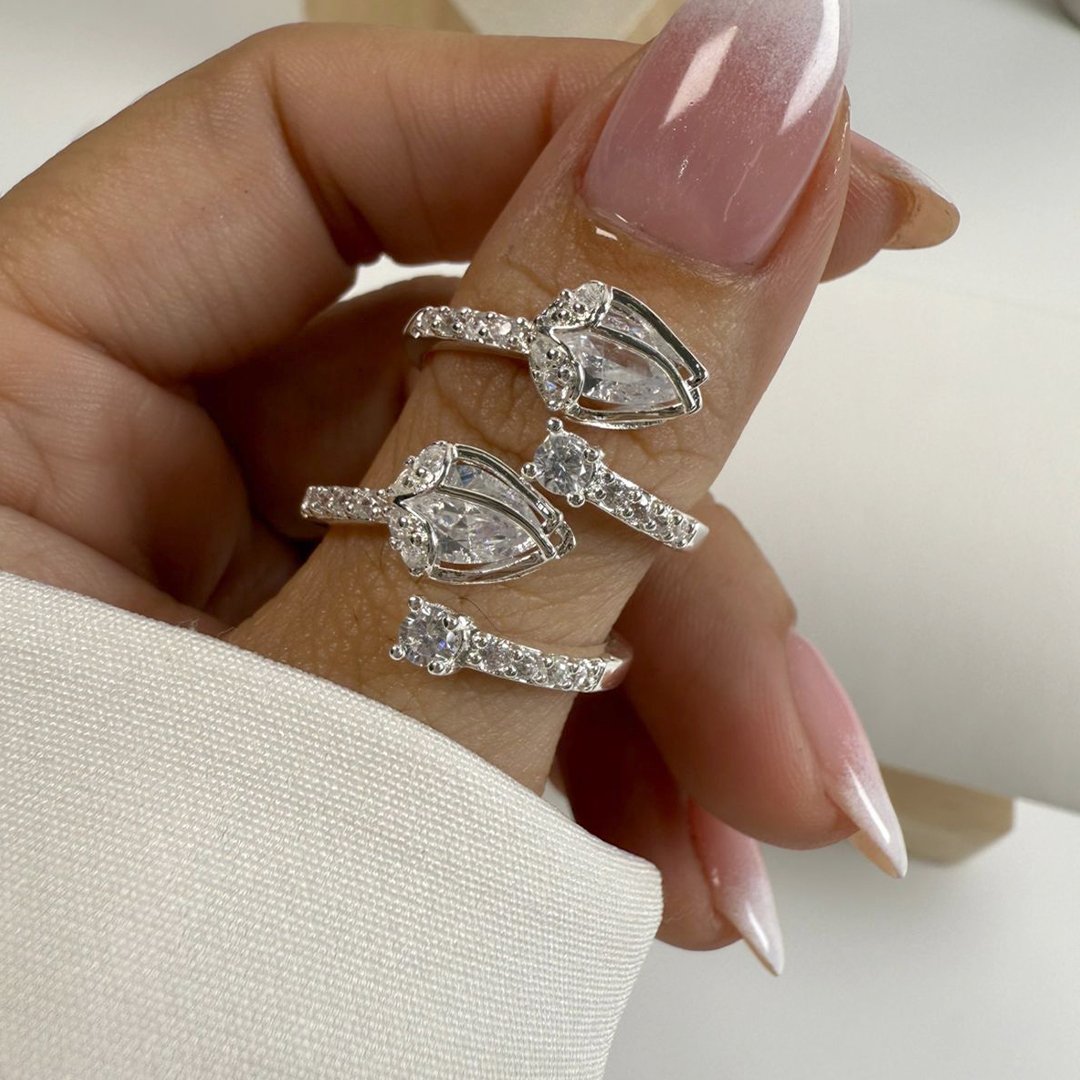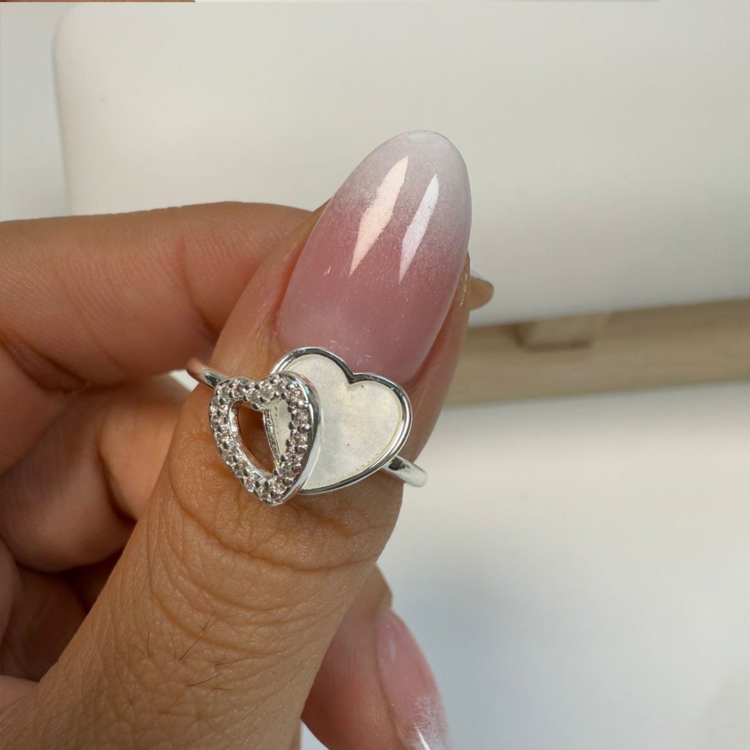 Anillo Corazon Calado - Esmaltado Blanco/ Piedritas