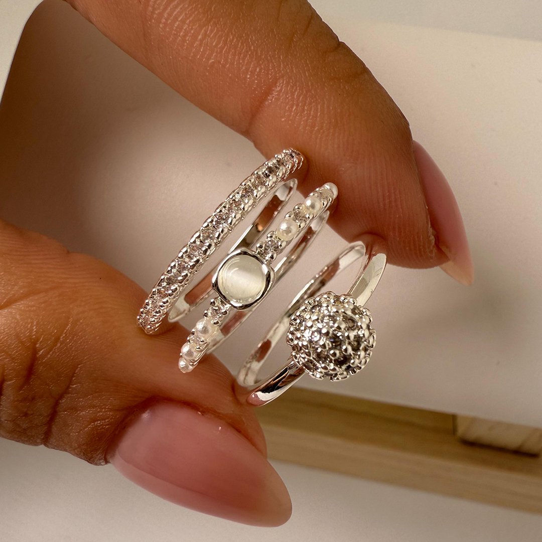 Anillo x3 Perlitas / Piedritas Blancas / Circulo con piedritas