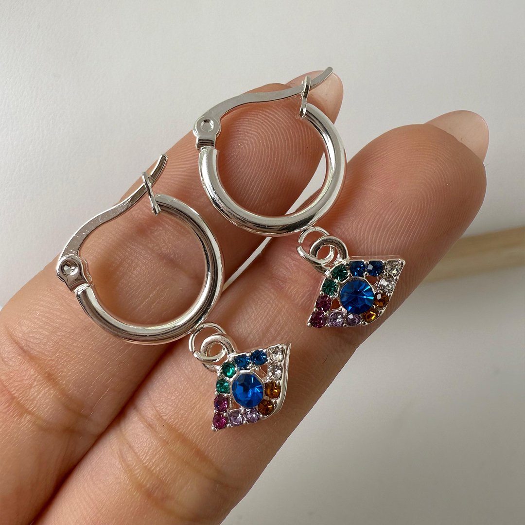 Argollas Ojito Azul + piedritas Coloridas