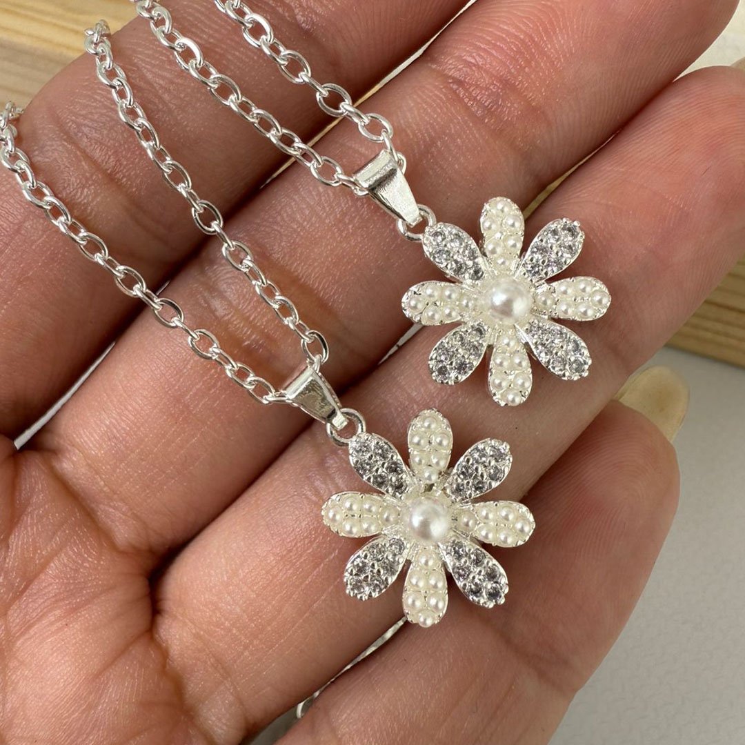 Collar Flor Alex - Bolitas Blancas / Piedritas Blancas