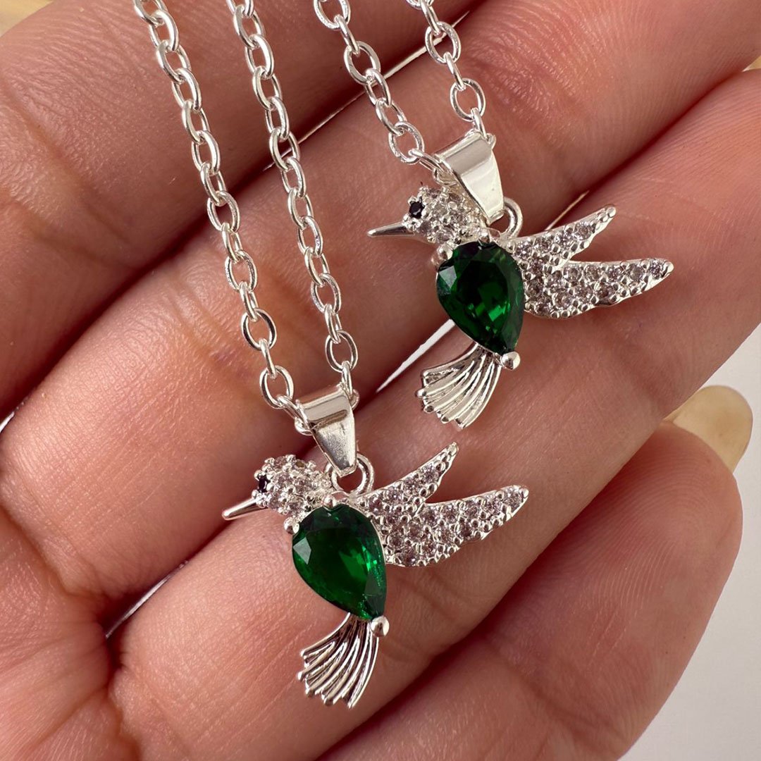 Collar + dije mini colibrí - verde