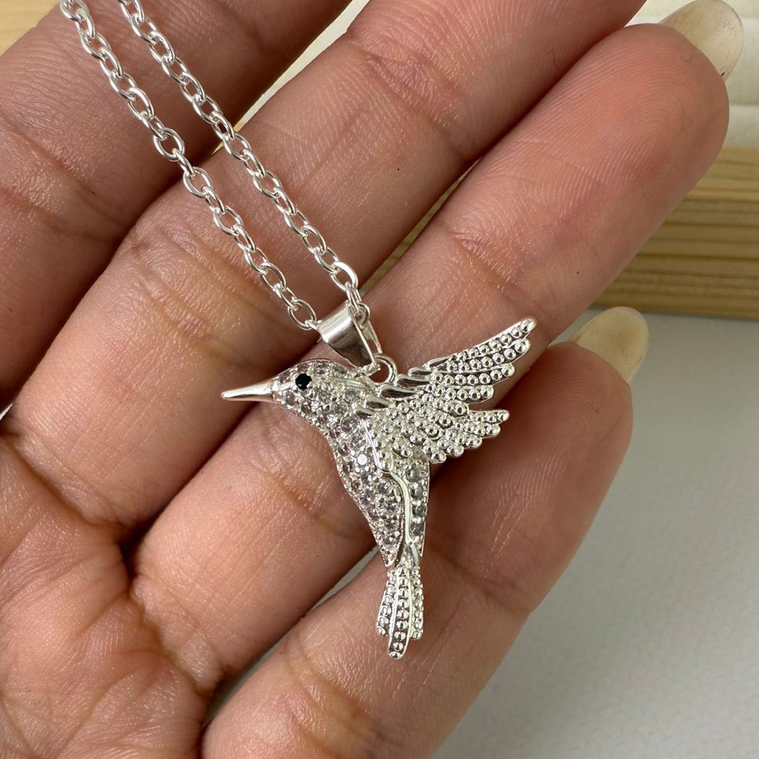 Collar dije Colibrí - Piedritas Blancas
