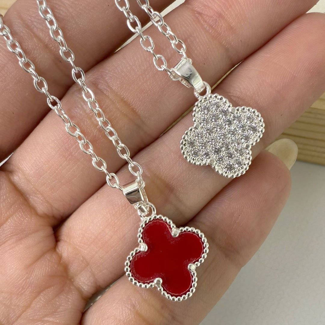 Collar Trébol Esmalte Rojo/ Piedras Blancas
