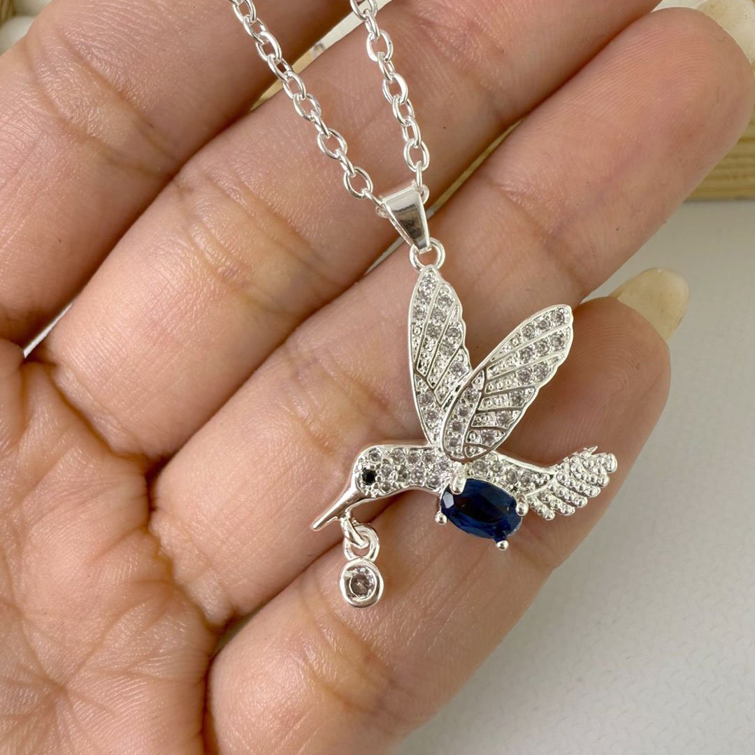Collar Colibrí Azul - Piedrita colgante