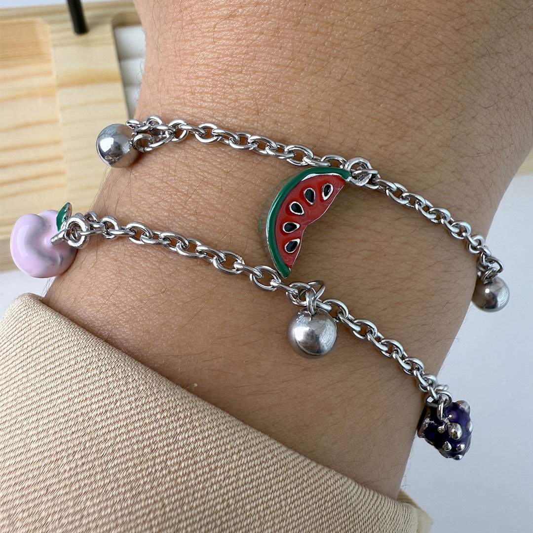 Pulsera Q. con dijes Durazno + Sandia + Uva