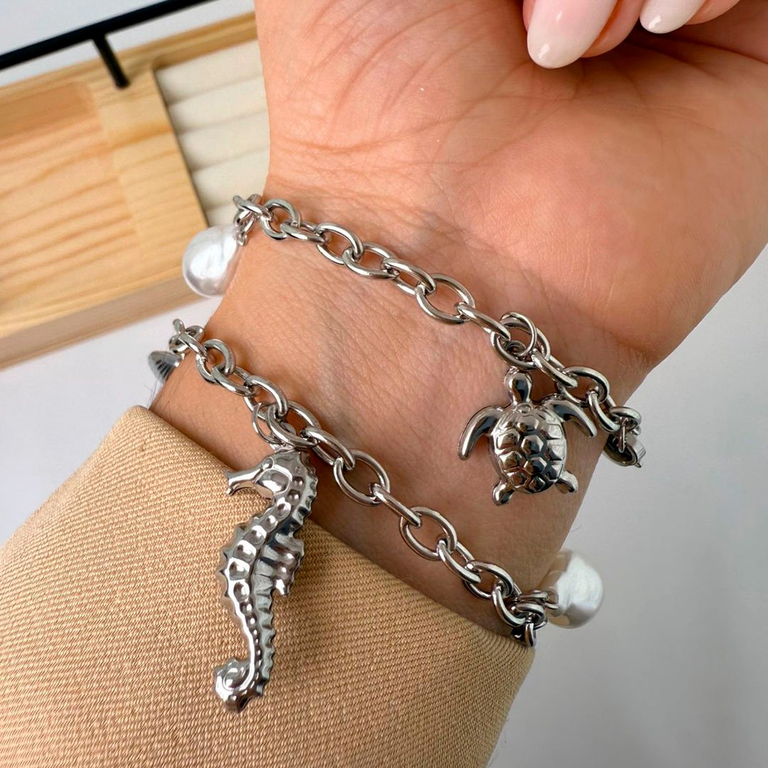 Pulsera Quirúrgico Dijes Pez / Ostra / Caballito de mar / Tortuga / Perla