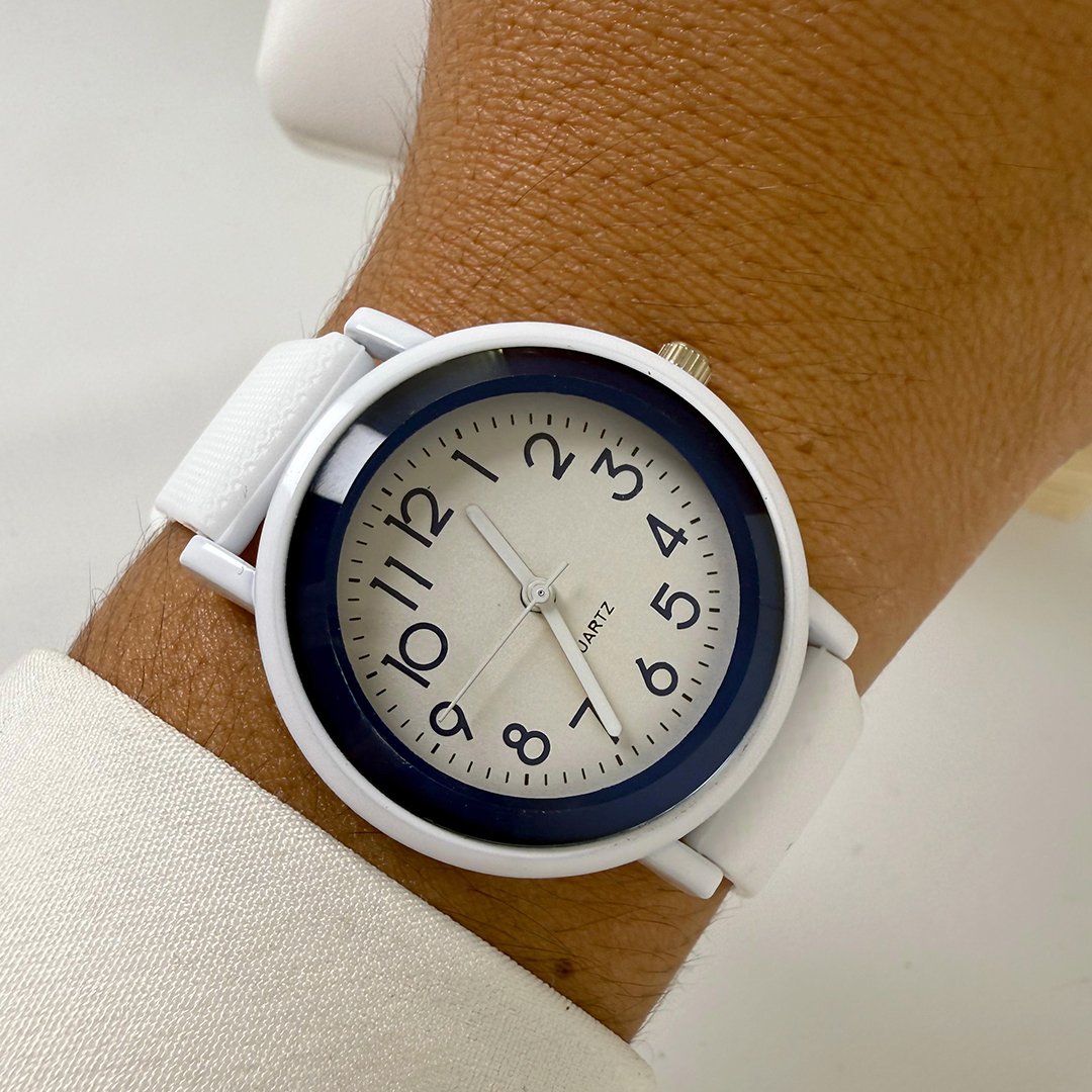 Reloj Duety - Blanco con Detalles con Azul