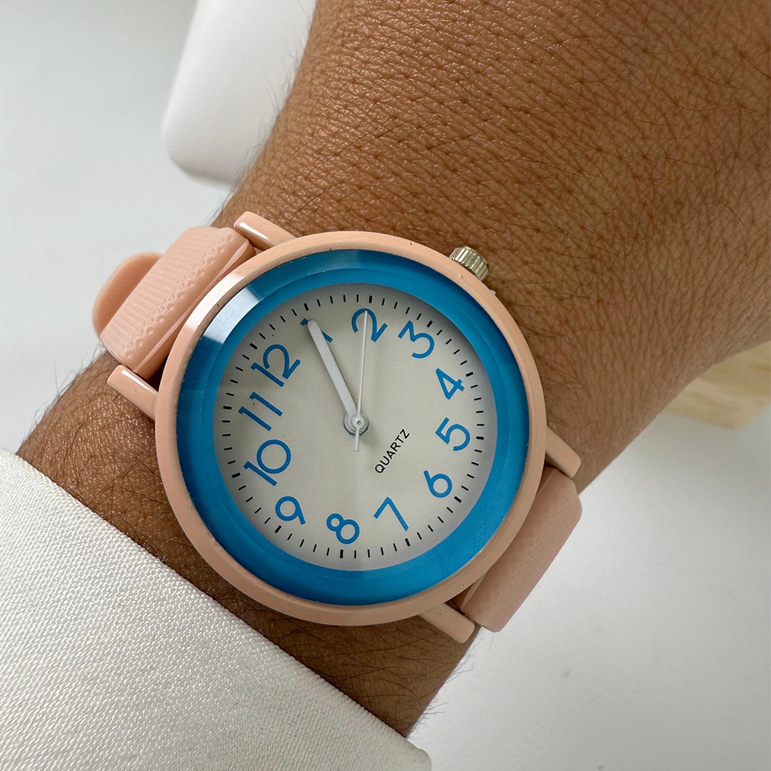 Reloj Duety - Salmon con Detalles Celeste