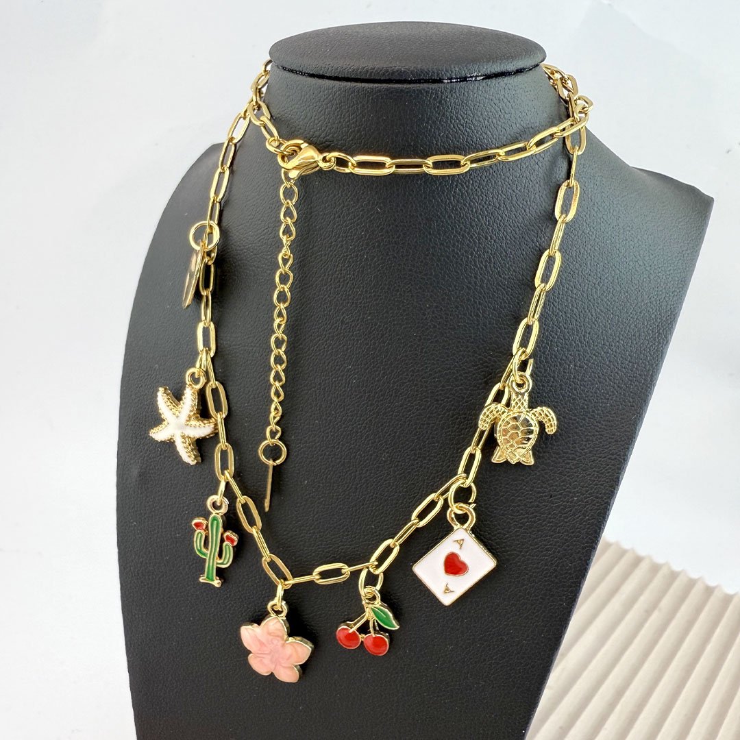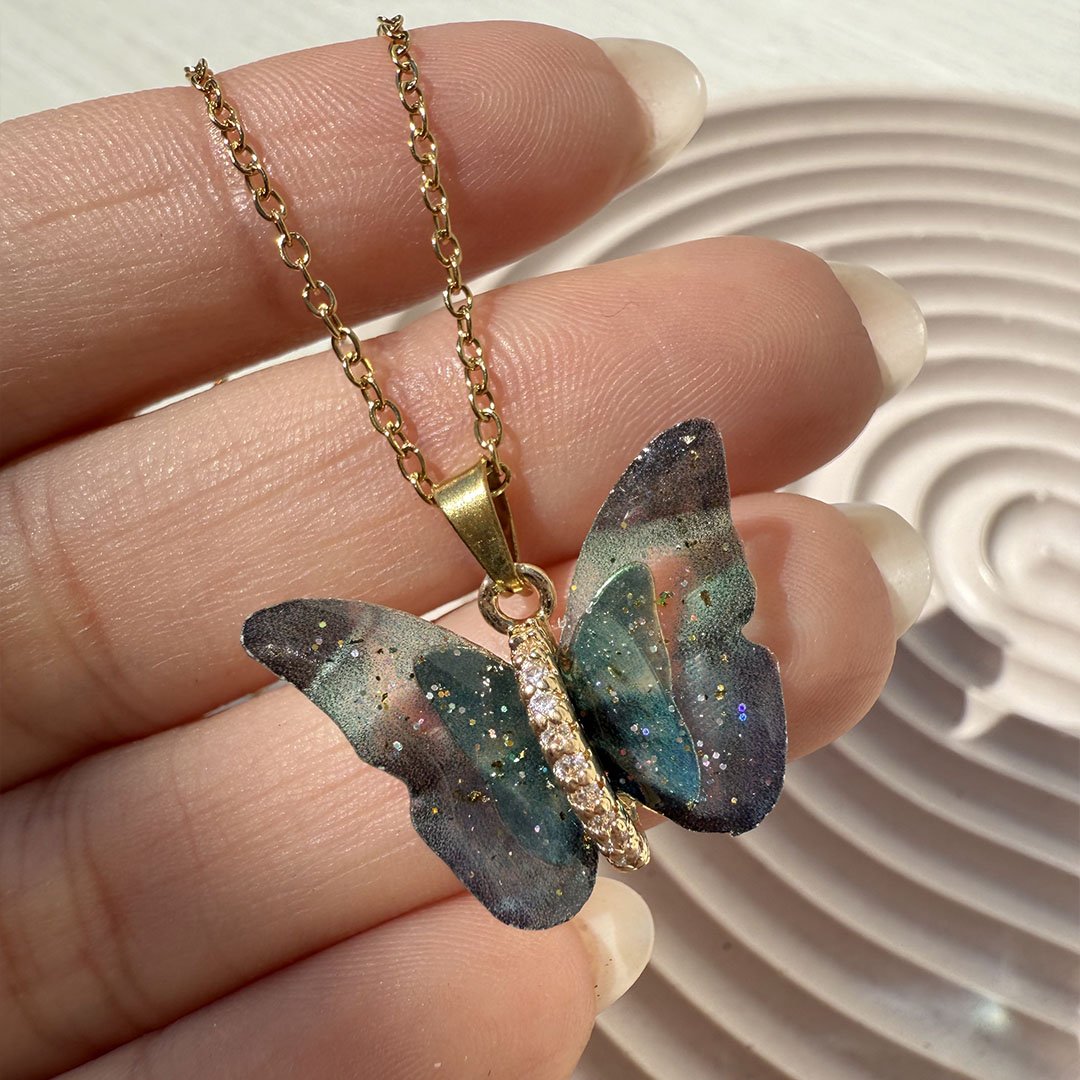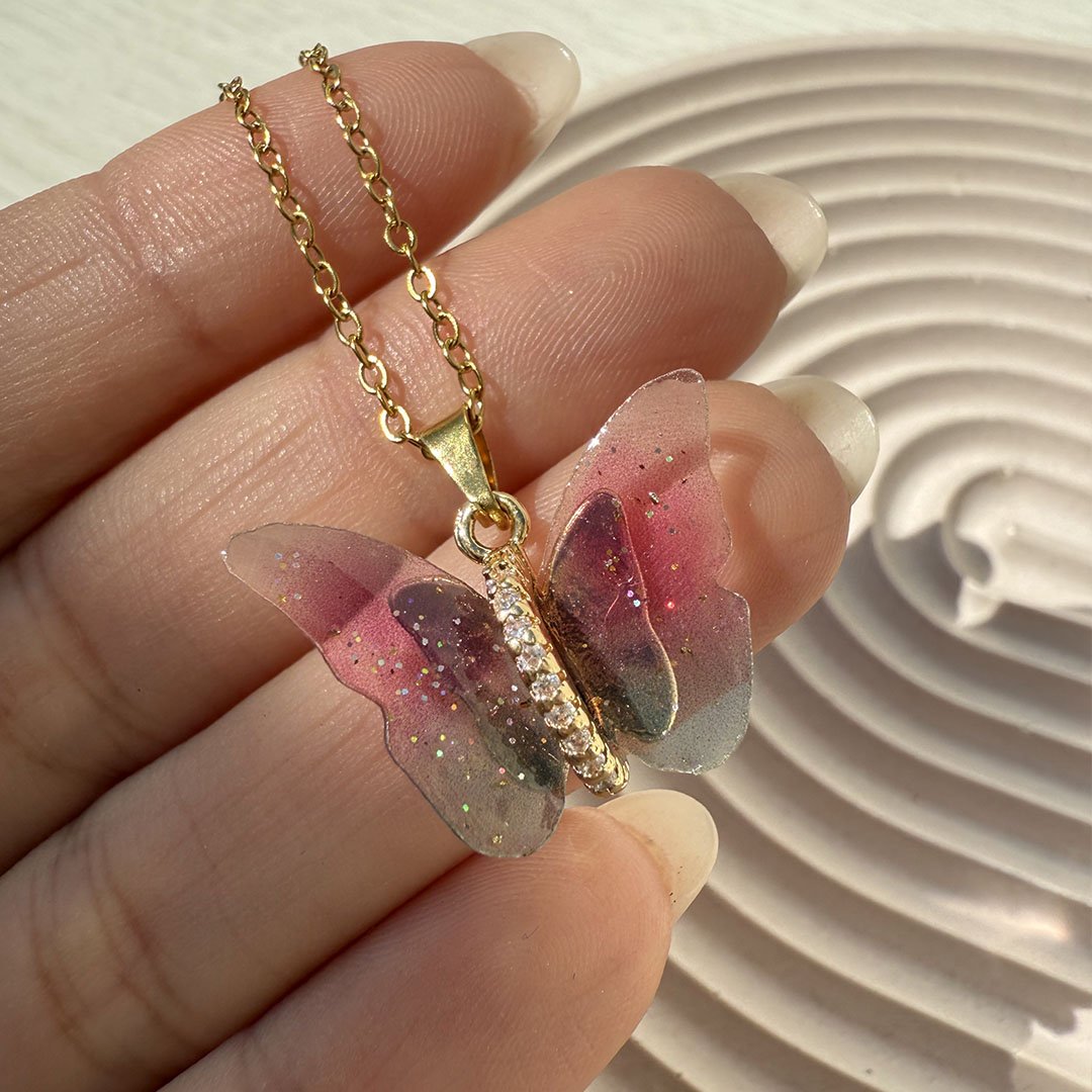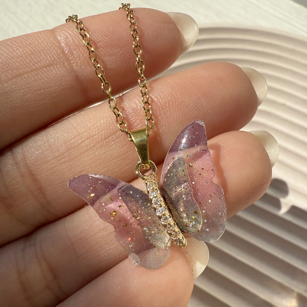 Collar Dorado norphe Mariposa - Fucsia/Verde