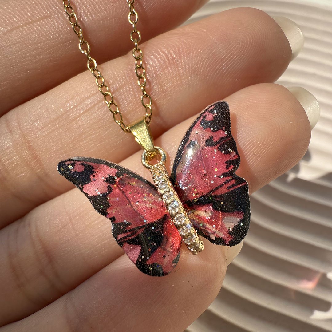Collar Dorado norphe Mariposa - Fucsia/Negro