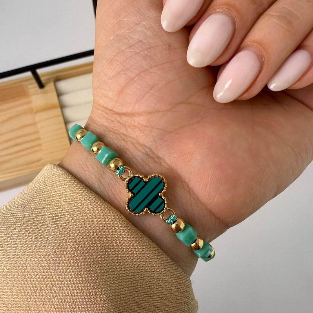 Pulsera de Hilo Trébol Verde - Bolitas Doradas