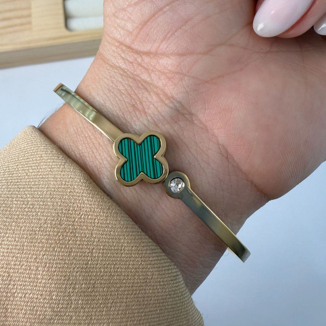 Esclava Dorada Trebol - Verde con Detalle negro