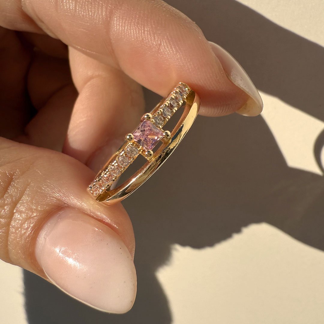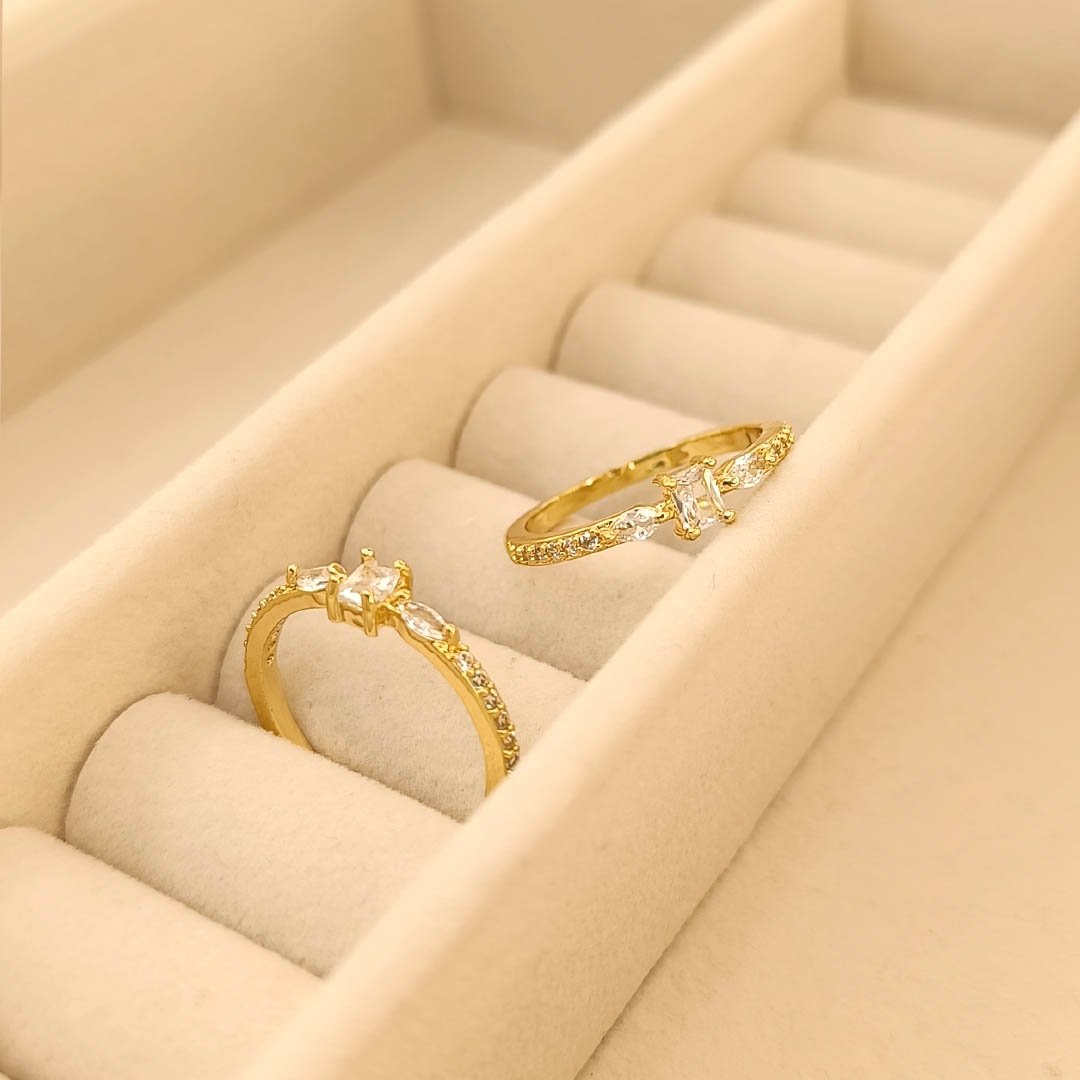 Anillo Dorado Piedrita Cuadrada