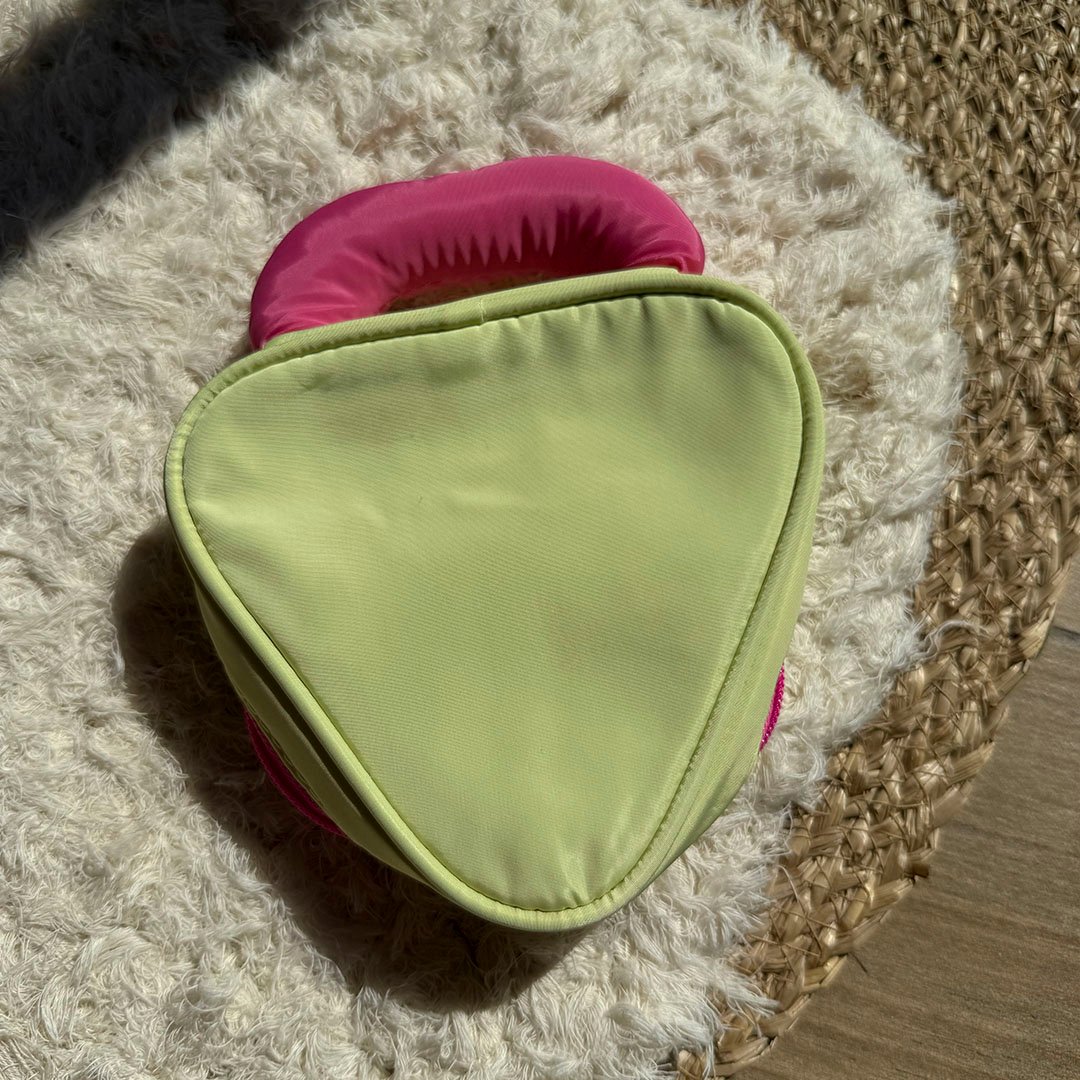Portacosméticos Triangulo - Verde lima / fucsia.