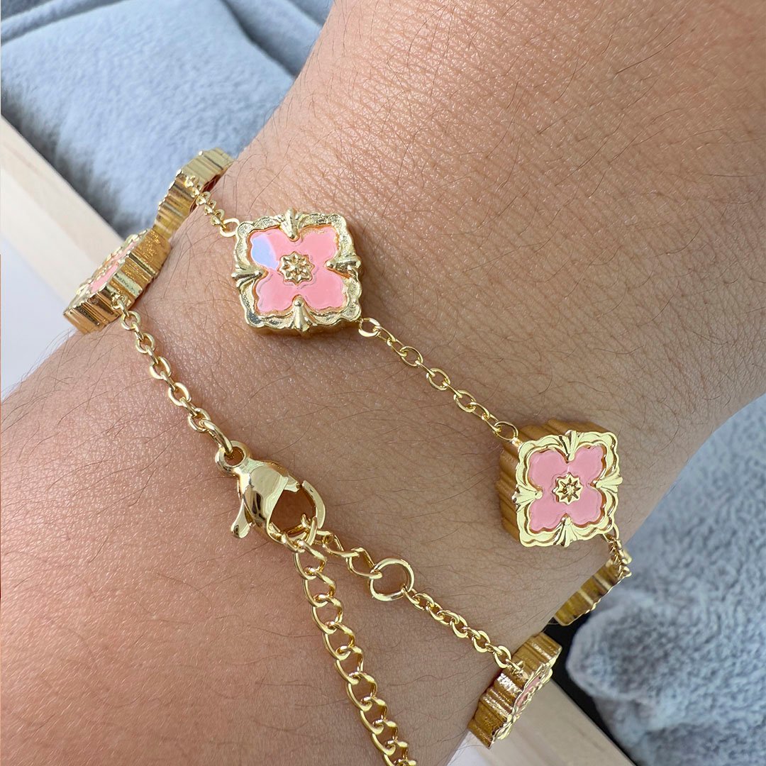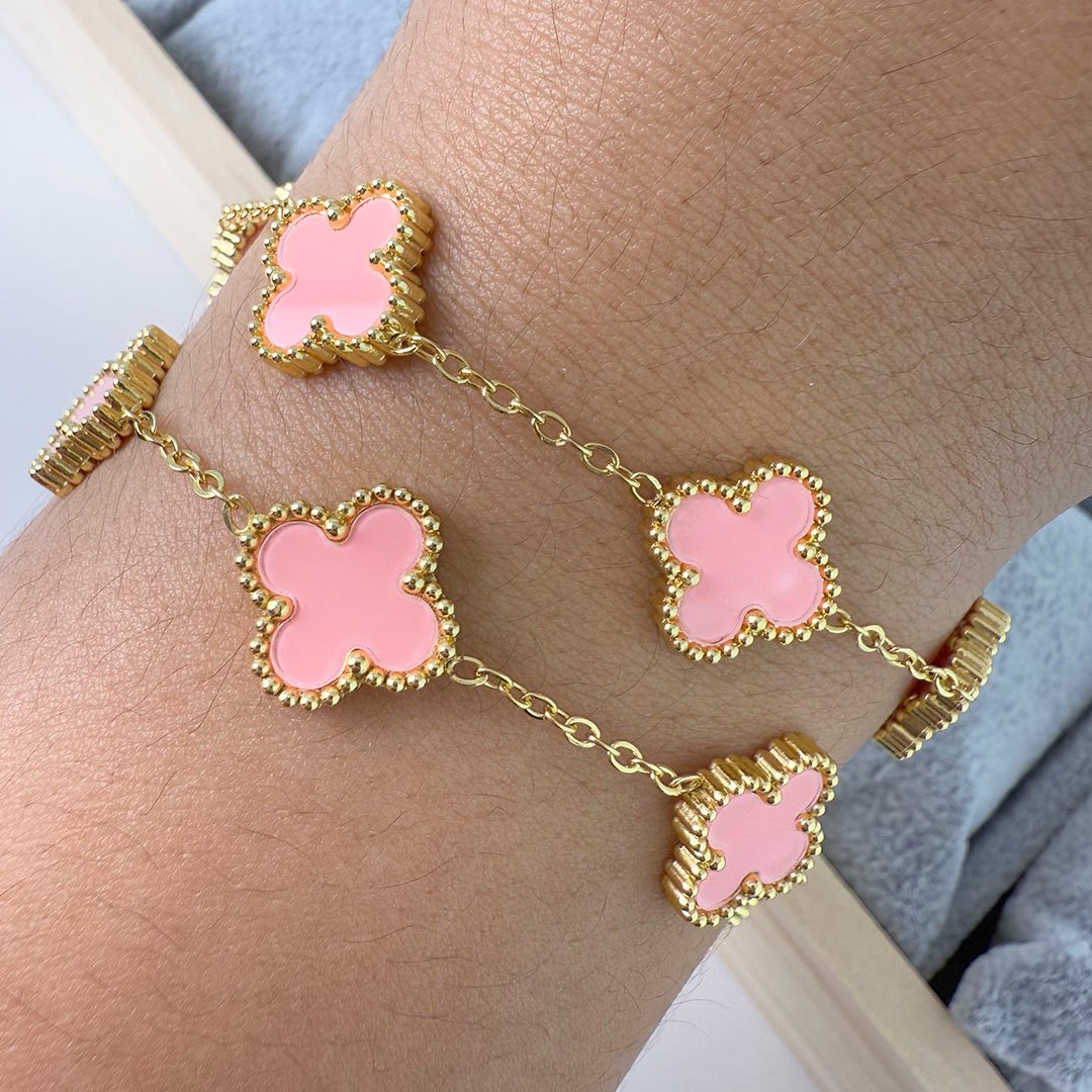 Pulsera Dorado Tréboles Rosado