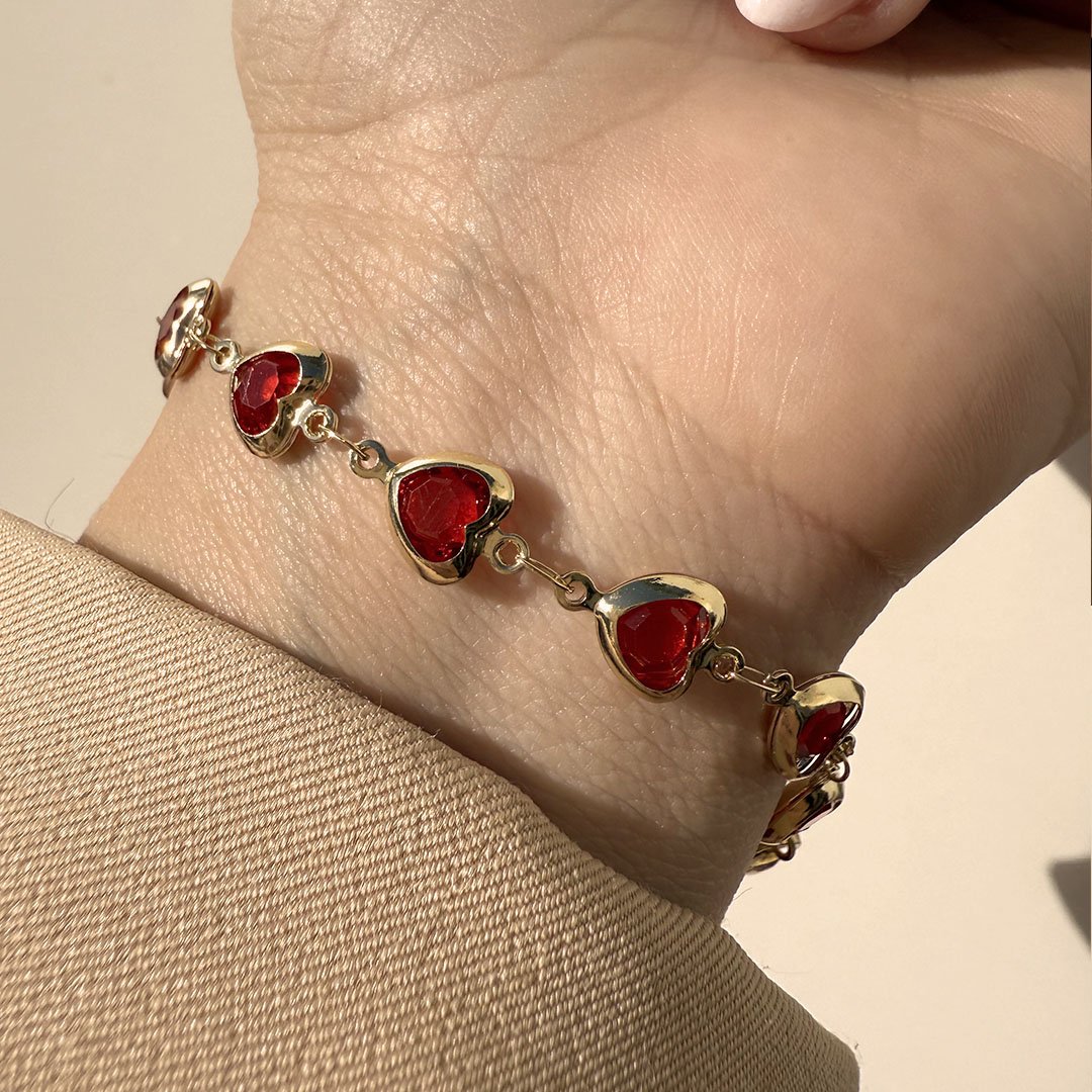 Pulsera Dorada Corazones Rojo