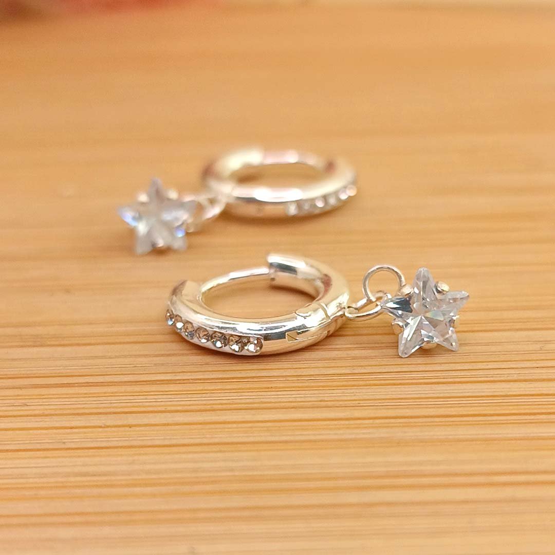 Acero Blanco Aros Argollas con brillos + Estrellas