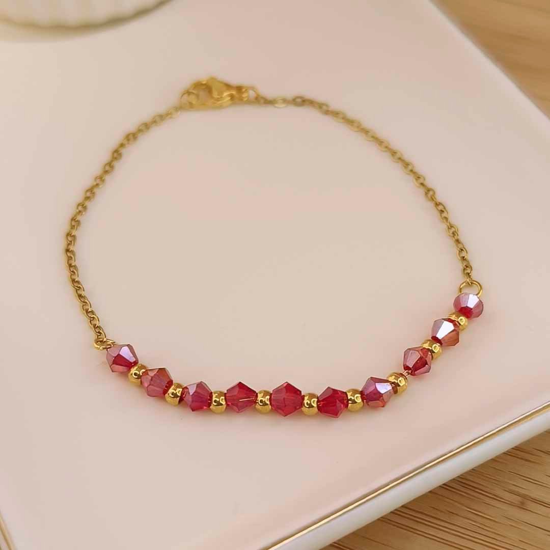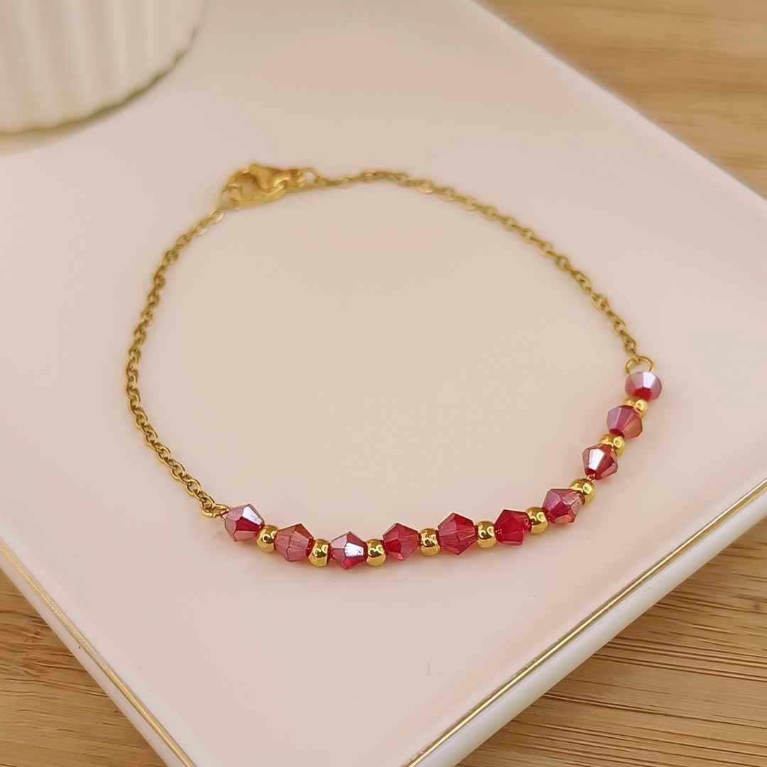Acero Dorado Pulseras Pulsera doradas + Piedritas Rojas en el medio