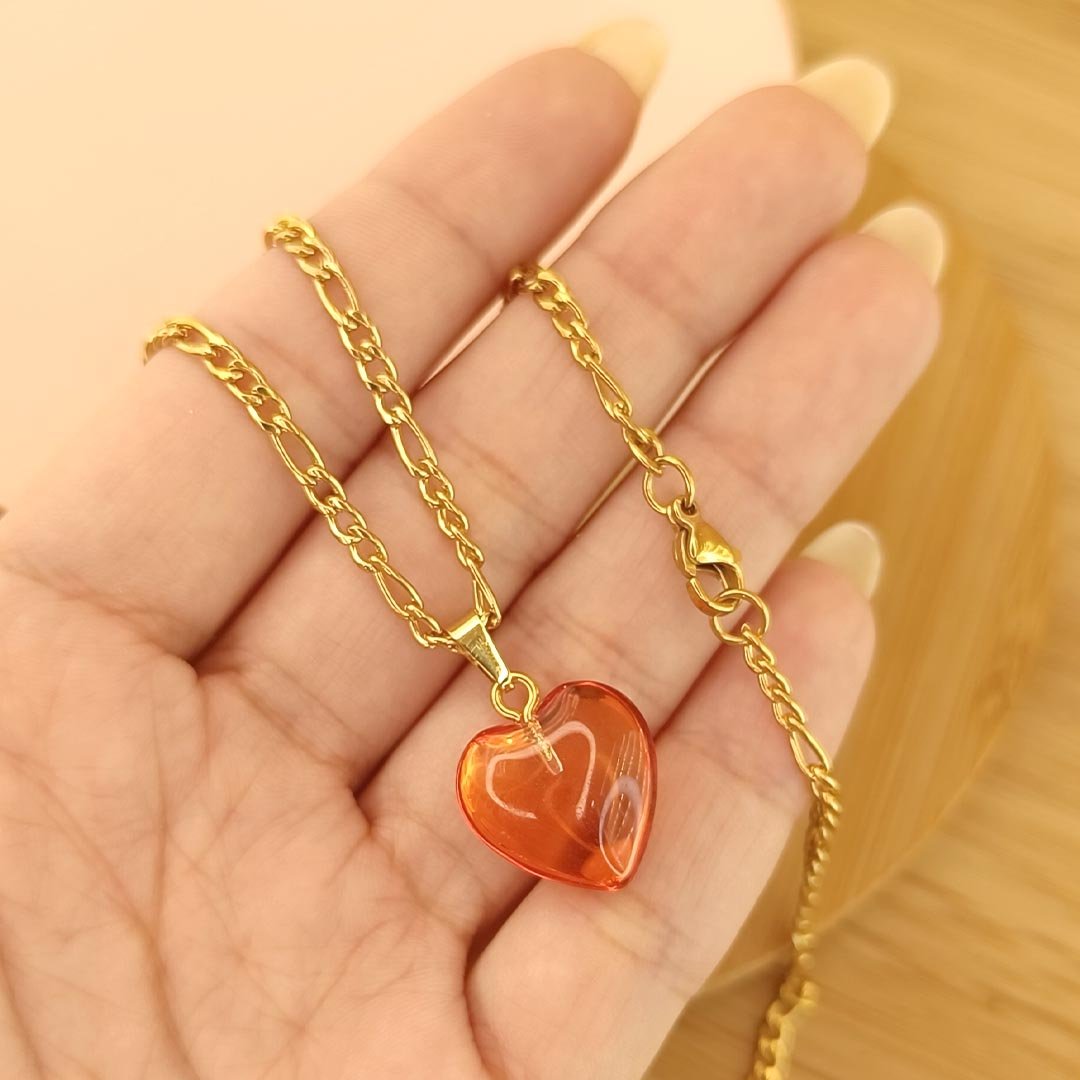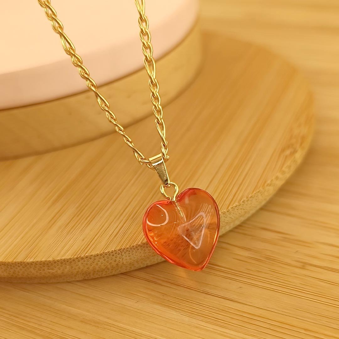 Acero Dorado Collares Collar Dorado Dije Corazón Naranja